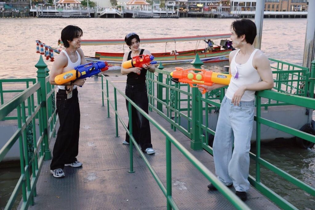 จากนั้น 3 หนุ่ม ก็ขอแปลงโฉมอีกรอบ คราวนี้มาในชุดเสื้อลายดอก และเสื้อกล้าม โชว์ความขาวออร่าสุด ให้สาวๆ ได้กรี๊ดดด… พร้อมปืนฉีดน้ำที่พร้อมส่ง “ความสุข” ให้กับทุกคนที่พบเจอในเทศกาลสงกรานต์ปีนี้!!!