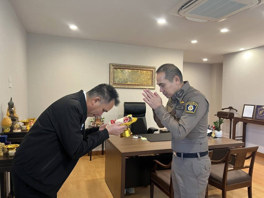 จุดแรกได้เดินทางไปตรวจเยี่ยมจุดบริการประชาชนบริเวณแยกบางสีทอง อำเภอบางกรวย จังหวัดนนทบุรี โดยมี พ.ต.อ.กิตติศักดิ์ พงศ์ธนารักษ์ ผกก.สภ.บางกรวย พร้อมคณะ กต.ตร.สภ.บางกรวย ให้การต้อนรับ พร้อมรายงานผลการปฏิบัติงานของเจ้าหน้าที่ในพื้นที่ ทั้งด้านการดูแลการจราจร การอำนวยความสะดวกให้ประชาชนและนักท่องเที่ยวในช่วงเทศกาล และมอบขวัญกำลังใจแก่เจ้าหน้าที่ที่ปฏิบัติหน้าที่ตลอดช่วงเทศกาล