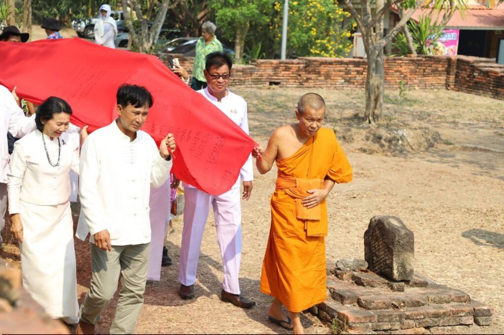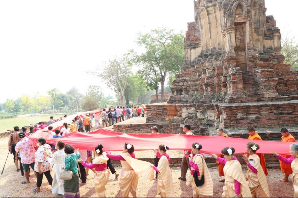 ในช่วงเช้าเวลา 9.00 น . ได้มีพิธีแห่ผ้าห่ม องค์หลวงพ่อทันใจ ซึ่งเป็นพระพุทธรูปอันศักดิ์สิทธิ์ที่ ชาวจังหวัดสิงห์บุรีให้การเคารพและศรัทธาเป็นอย่างมาก และห่มผ้าพระเจดีย์พระธาตุ เป็นความยาว 50 เมตร โดยมี พระมหาจรัญพรหมจาโร เป็นประธานฝ่ายสงฆ์ นำคณะสงฆ์ เข้าพิธี โดย นางเพียรทอง ธนายศสกุล ผอ.กลุ่มส่งเสริมศาสนาศิปะและวัฒนธรรม สำนักงานวัฒนธรรมจังหวัดสิงห์บุรี พร้อมคณะ อบต จักรสีห์ ผู้ใหญ่บ้านกำนันชาวบ้าน อุบาสกอุบาสิกา แม่ชี สามเณร สจ.ทิพวรรณ ทองรักษ์ สมาชิกสภาจังหวัดสิงห์บุรี เข้าร่วมพิธีกัน พร้อมหน้า