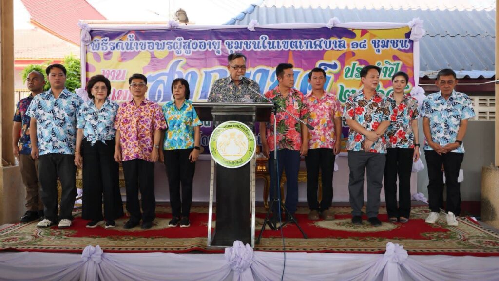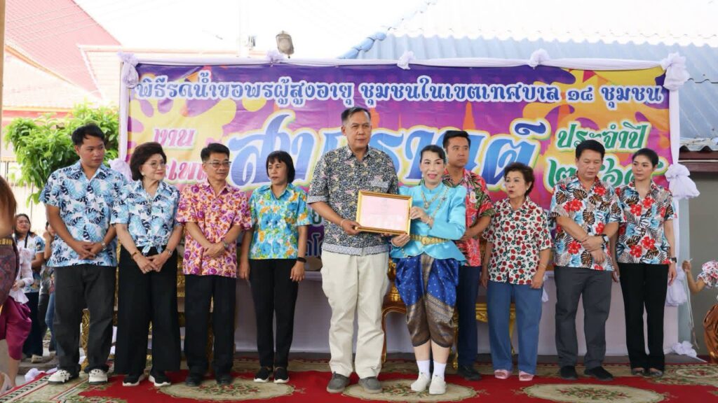 นายณรงค์ศักดิ์ วิงวอน นายกเทศมนตรีเมืองสิงห์บุรี จัดกิจกรรมไฮไลท์ในช่วงเช้าเน้นการสืบสานคุณค่าทางสังคมตามมติคณะรัฐมนตรีที่กำหนดให้วันที่ 13 เมษายนของทุกปีเป็น “วันผู้สูงอายุแห่งชาติ” เพื่อแสดงความกตัญญูกตเวทีภายใต้แนวคิด “พลังผู้สูงวัย สร้างสังคมไทยรู้จักสามัคคี” ในโอกาสนี้ได้จัดพิธีรดน้ำขอพรผู้สูงอายุจาก 14 ชุมชนในเขตเทศบาลเมืองสิงห์บุรี รวมทั้งสิ้น 427 ท่าน เพื่อความเป็นสิริมงคลในการเริ่มต้นปีใหม่ไทย โดยมีคณะรำวง 3 ส. เทศบาลเมืองสิงห์บุรี ร่วมสร้างสีสันและความสนุกสนานในพิธีเปิด