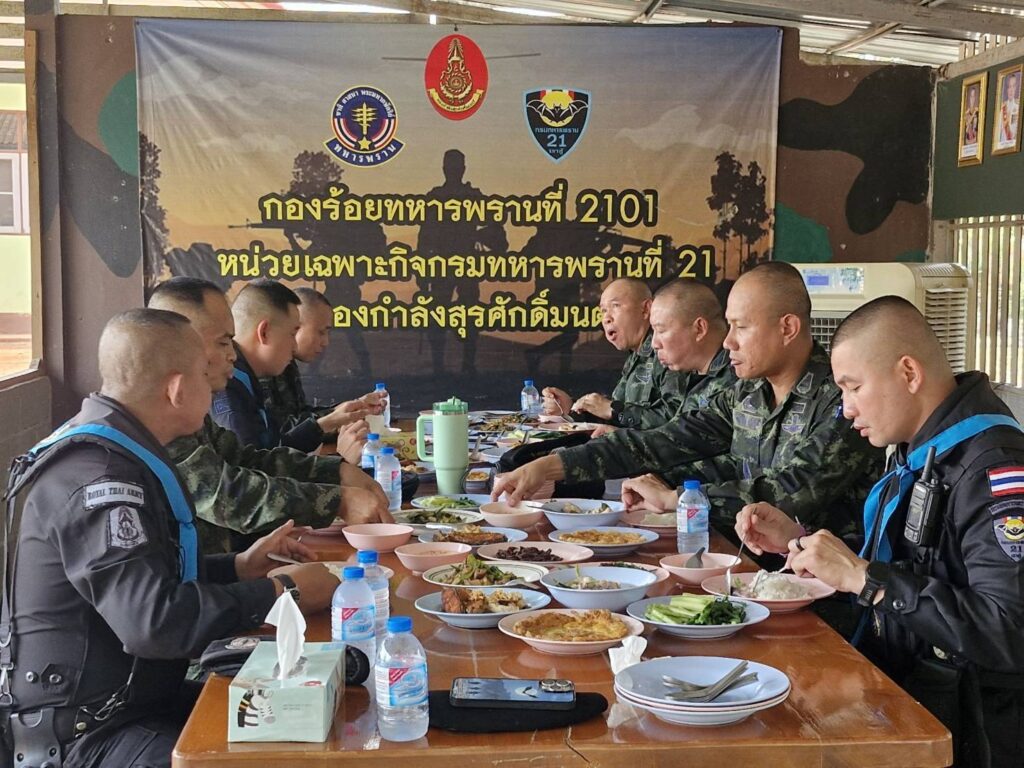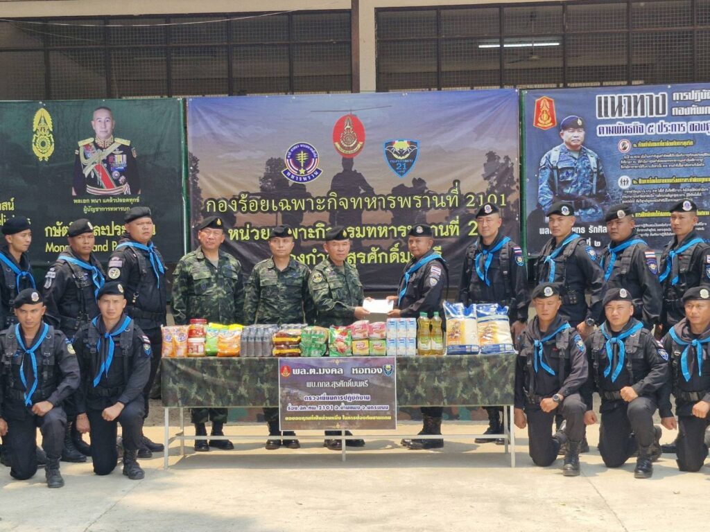 ในโอกาสนี้ ผู้ผบ.กกล.สุรศักดิ์มนตรี ได้มอบสิ่งของบำรุงขวัญให้กำลังป้องกันชายแดนที่ปฏิบัติภารกิจในพื้นที่ชายแดนรับผิดชอบของ กองกำลังสุรศักดิ์มนตรี เพื่อเป็นขวัญกำลังใจในการปฏิบัติหน้าที่ และกล่าวขอบคุณกำลังพลที่ปฏิบัติภารกิจสำคัญในการดูแลแนวชายแดนไทย-ลาว ซึ่งมีความทุ่มเท เสียสละ ปกป้องประเทศชาติจากภัยคุกคาม ยาเสพติด หรือสิ่งผิดกฎหมาย ซึ่งแสดงถึงการปฏิบัติหน้าที่อย่างเต็มกำลังความสามารถ รวมทั้งการช่วยเหลือพี่น้องประชาชนที่ได้รับความเดือนร้อนตามแนวชายแดนไทย-ลาวในทุกสถานการณ์ และรับประทานอาหารร่วมกับกำลังพลสร้างขวัญกำลังใจ สร้างความภูมิใจให้กับกำลังป้องกันชายแดนทุกนาย ที่ปฏิบัติหน้าที่ด้วยความเข้มแข็งอย่างไม่ย่อท้อเพื่อปกป้องอธิปไตยของชาติไทยสืบไป