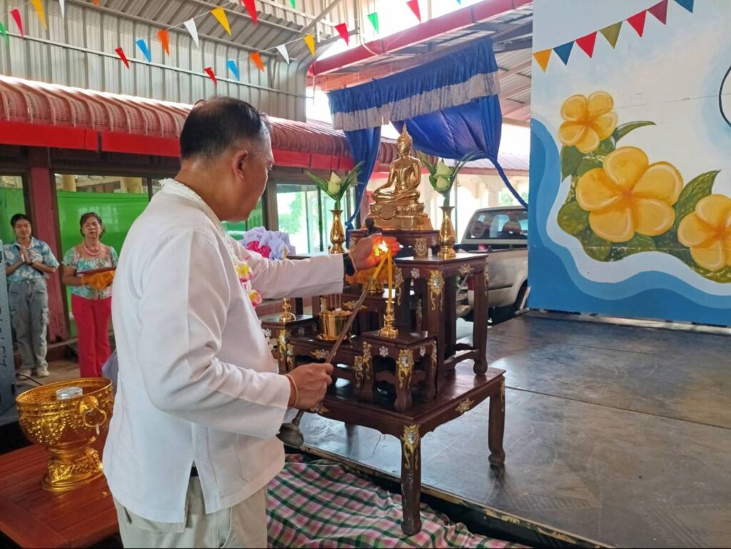 วันที่ 15 เมษายน 2569 เวลา 10.00 น.นายวราดิศร อ่อนนุช ผู้ว่าราชการจังหวัดสิงห์บุรี เป็นประธานในพิธีเปิด “โครงการสืบสานประเพณีวันสงกรานต์ ประจำปี 2569″ณ วัดแหลมคาง โดยมีนายปรียุทธิ์ กังแฮ นายอำเภอบางระจันพร้อมภรรยา นายสมเกียรติ ทำดี นายกองค์การบริหารส่วนตำบลแม่ลา สาธารณสุขอำเภอบางระจัน เจ้าหน้าที่ และผู้สูงอายุในพื้นที่เข้าร่วมกิจกรรมอย่างอบอุ่นและพร้อมเพรียง