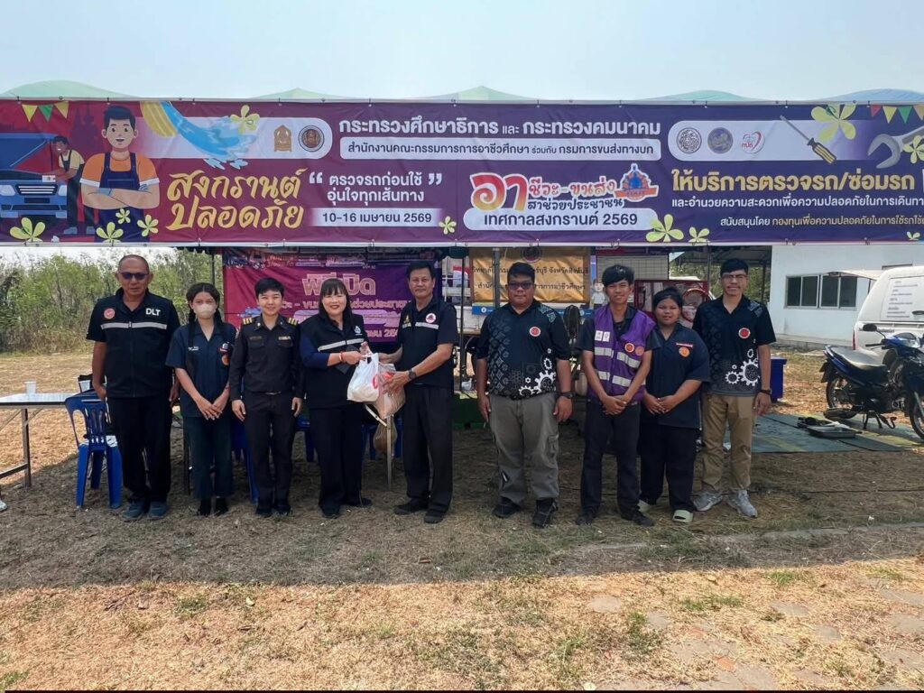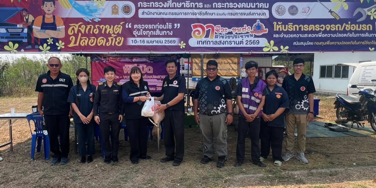 วันที่ 15 เมษายน 2569 เวลา 10.30 น. นางสาวเยาวมาศ เทียวทอง ขนส่งจังหวัดสิงห์บุรี พร้อมด้วยเจ้าหน้าที่สำนักงานขนส่งจังหวัดสิงห์บุรี ลงพื้นที่ตรวจเยี่ยมการปฏิบัติงาน โครงการ “อาชีวะ-ขนส่ง อาสาช่วยประชาชน” เทศกาลสงกรานต์ พ.ศ. 2569 รวมทั้งมอบสิ่งของเพื่อเป็นขวัญกำลังใจให้แก่คณาจารย์ นักเรียน นักศึกษาจากวิทยาลัยการอาชีพอินทร์บุรี ในช่วงเทศกาลสงกรานต์ระหว่างวันที่ 10 – 16 เมษายน 2569 ทั้งนี้โครงการดังกล่าวได้รับการสนับสนุนการจัดสรรเงินจากกองทุนเพื่อความปลอดภัยในการใช้รถใช้ถนน (กปถ.) ณ บริเวณปั้มพีที (ถนนสายเอเชีย ฝั่งขาล่อง) ตำบลอินทร์บุรี อำเภออินทร์บุรี จังหวัดสิงห์บุรี