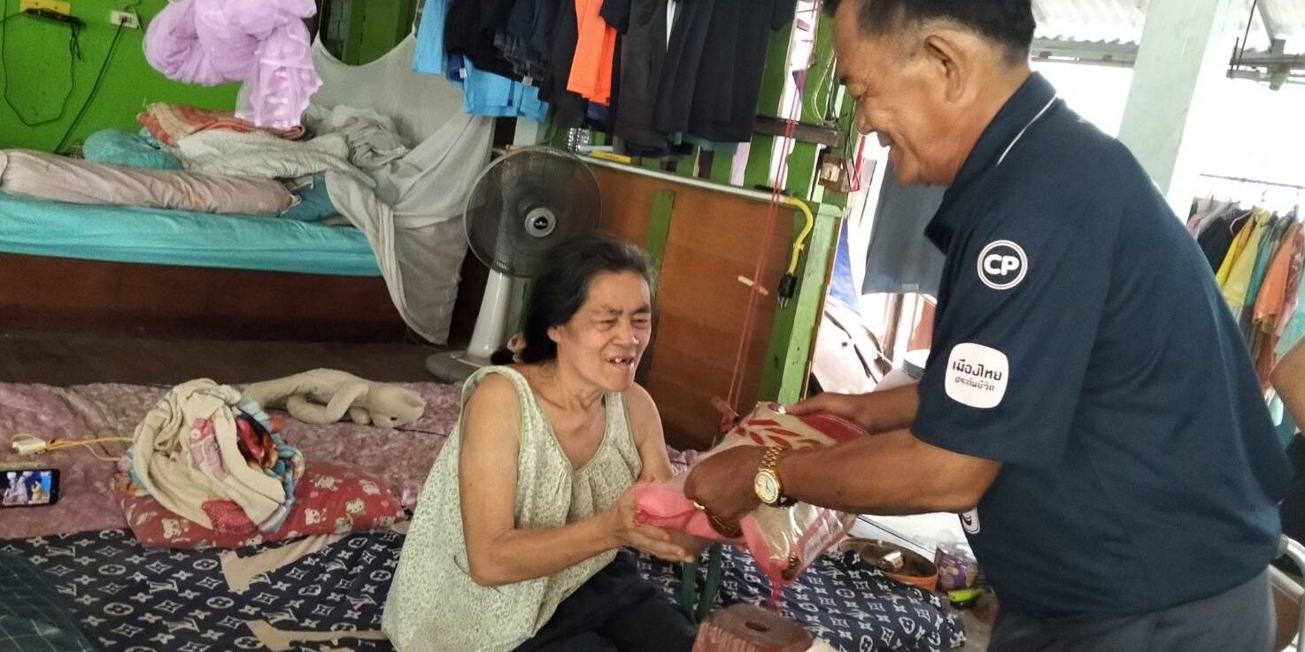 ใจปล้ำใช้เงินส่วนตัวซื้อข้าวสารอาหารแห้งมอบให้กับผู้สูงอายุและผู้ป่วยที่มีภาวะพึ่งพิงเพื่อช่วยเหลือบรรเทาปัญหาเศรษฐกิจ