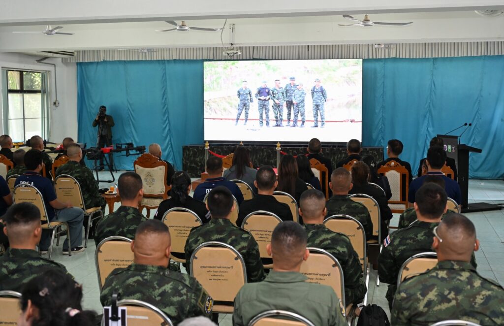 ถัดมาเป็นพิธีมอบประกาศนียบัตรแก่ผู้ผ่านการฝึกอบรมหลักสูตรการใช้อากาศยานไร้คนขับเชิงยุทธวิธี ซึ่งถือเป็นอีกหนึ่งผลลัพธ์สำคัญของความร่วมมือในครั้งนี้ สะท้อนถึงความสำเร็จในการพัฒนาศักยภาพกำลังคนให้มีความรู้ ความสามารถ และทักษะที่สอดคล้องกับการใช้งานจริงในภารกิจด้านความมั่นคงและการพัฒนาประเทศ โดยผู้เข้ารับการอบรมสามารถนำองค์ความรู้ที่ได้รับไปประยุกต์ใช้ได้อย่างมีประสิทธิภาพและเกิดประโยชน์สูงสุด