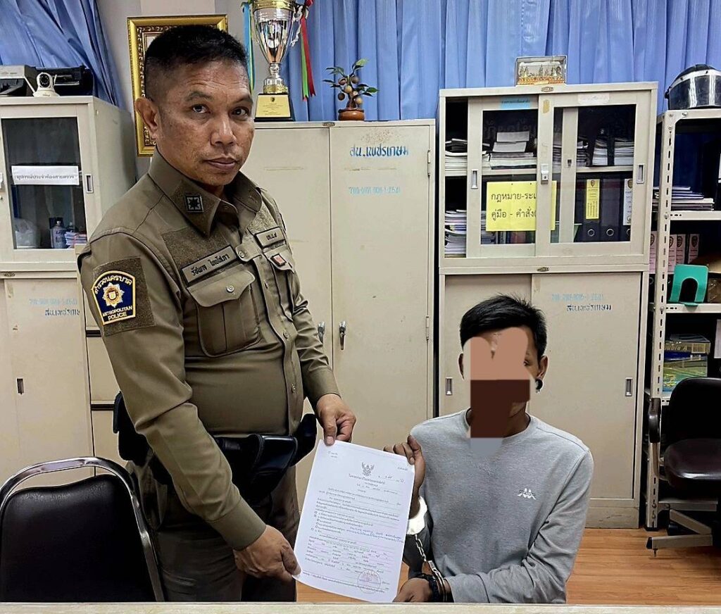 พฤติการณ์กล่าวคือ วันนี้ (17 เม.ย.69) เวลาประมาณ 20.50 น. เจ้าพนักงานตำรวจชุดจับกุม ได้ออกตรวจพื้นที่ตามปกติ ผ่านมาถึงบริเวณภายในปั๊มน้ำมันบางจาก ซอยเพชรเกษม 69 แขวงหลักสอง เขตบางแคกรุงเทพฯ พบ นายศาสตราวุธ(หรือคิว) (ทราบชื่อ-สกุลจริงภายหลัง) กำลังยืนอยู่ภายในในปั๊ม น้ำมันบางจาก ภายในซอยเพชรเกษม 69 เมื่อพบเห็นเจ้าหน้าที่ตำรวจได้แสดงอาการมีพิรุธ ต้องสงสัย เจ้าหน้าที่ตำรวจจึงแสดงตนและขอทำการตรวจค้น โดยก่อนตรวจค้นเจ้าหน้าที่ชุดจับกุมได้แสดงความบริสุทธิ์ใจให้ นายศาสตราวุธฯ ดูเป็นที่พอใจแล้ว ผลการตรวจค้นไม่พบสิ่งผิดกฎหมาย แต่นายศาสตราวุธฯ ยังมีอาการพิรุธอยู่ เจ้าหน้าที่ตำรวจจึงได้ทำการตรวจสอบ บุคคลตามหมายจับผ่านระบบ one police ปรากฏว่าเป็นบุคคลตามหมายจับของ สภ.เมืองราชบุรี ลงวันที่ 8 ก.พ. 2566 ที่จ.55/2566 ซึ่งต้องหาว่ากระทำความผิดฐานร่วมกันฉ้อโกงประชาชนโดยแสดงตนเป็นบุคคลอื่นและนำเข้าสู่ระบบคอมพิวเตอร์ซึ่งข้อมูลคอมพิวเตอร์ปลอมไม่ว่าจะทั้งหมดหรือบางส่วนหรือข้อมูลคอมพิวเตอร์อันเป็นเท็จโดยประการที่น่าจะเกิดความเสียหายแก่ผู้อื่น เจ้าหน้าที่ตำรวจชุดจับกุมจึงได้เชิญตัวนายศาสตราวุธฯ มาที่ สน.เพชรเกษม เพื่อตรวจสอบยืนยันหมายจับอีกครั้ง ปรากฏว่า สภ.เมืองราชบุรี ยืนยันว่ายังต้องการตัวมาดำเนินคดีอยู่ จากนั้นได้ร่วมกันแสดงหมายจับให้ นายศาสตราวุธฯ ดู อ่าน ข้อความตามหมายให้ นายศาสตราวุธฯ นายศาสตราวุธฯ ทราบและเข้าใจดีแล้ว รับว่าเป็นบุคคลตามหมายจับจริง และยังไม่เคยถูกจับกุมตัวมาดำเนินคดีในมูลคดีเดียวกันมาก่อนจึงได้ แจ้งข้อกล่าวหาให้ทราบ ควบคุมตัวนำส่งพนักงานสอบสวนเพื่อดำเนินคดีตามกฎหมาย