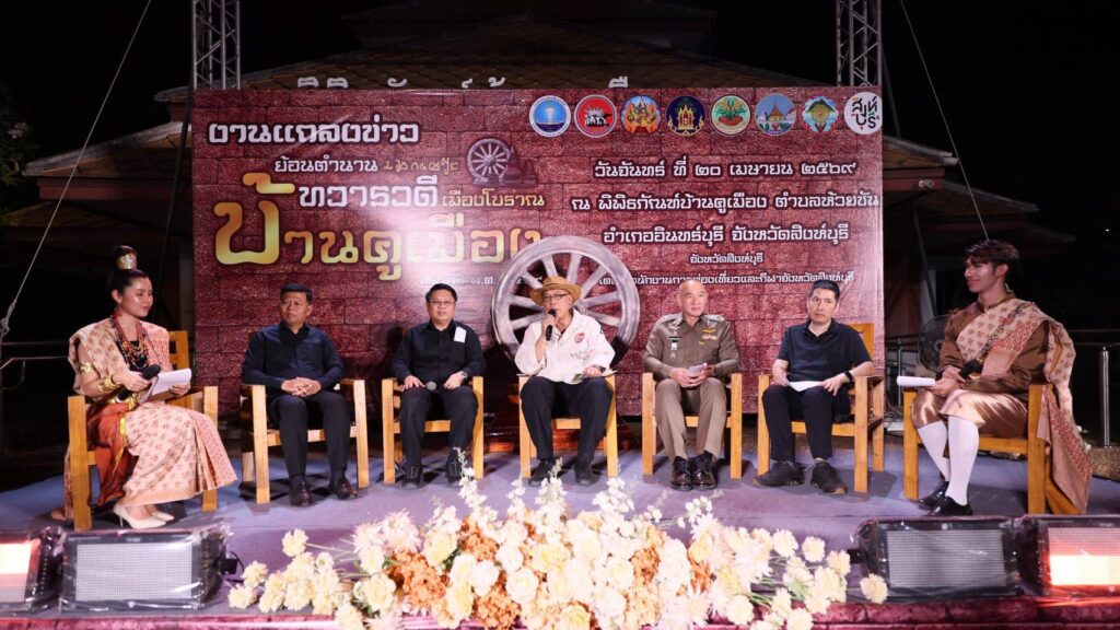 นายวราดิศร อ่อนนุช ผู้ว่าราชการจังหวัดสิงห์บุรี เป็นประธานในการแถลงข่าว งานย้อนตำนานทวารวดีเมืองโบราณบ้านคูเมือง ประจำปี พ.ศ.2569 โดยมีนายปฏิญญา สันติชาติงาม ท่องเที่ยวและกีฬาจังหวัดสิงห์บุรี พลตำรวจตรีชัยรพ จุณณวัตต์ ผู้บังคับการตำรวจภูธรจังหวัดสิงห์บุรี นายแพทย์วิญญู จันทร์เนตร นายแพทย์สาธารณสุขจังหวัดสิงห์บุรี นายสมศักดิ์ เกี้ยวเกิด นายอำเภออินทร์บุรี ร่วมแถลงข่าว พร้อมด้วยหัวหน้าส่วนราชการ นายกองค์การบริหารส่วนตำบลห้วยชัน ท่องเที่ยวและกีฬาจังหวัดสิงห์บุรี สื่อมวลชน และประชาชนเข้าร่วมในการแถลงข่าว