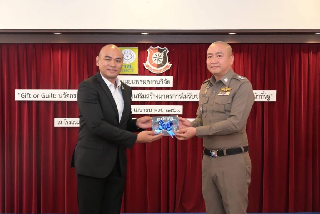 เมื่อวันที่ 17 เมษายน 2569 สำนักงานการวิจัยแห่งชาติ (วช.) กระทรวงการอุดมศึกษา วิทยาศาสตร์ วิจัยและนวัตกรรม (อว.) ร่วมกับ โรงเรียนนายร้อยตำรวจ จัดกิจกรรมเผยแพร่ผลงานวิจัย “Gift or Guilt : นวัตกรรมบอร์ดเกมเสมือนเพื่อเสริมสร้างมาตรการไม่รับของขวัญในการปฏิบัติหน้าที่รัฐ” โดยมี พันตำรวจโท วิชิต อาษากิจ เป็นหัวหน้าโครงการ ซึ่งได้รับเกียรติจาก ศาสตราจารย์ พลตำรวจตรี ดร.ชัชนันท์ ลีระเติมพงษ์ รองผู้บัญชาการโรงเรียนนายร้อยตำรวจ เป็นประธาน พร้อมด้วยคณะนักวิจัยและผู้แทนหน่วยงานภาคีเครือข่าย เข้าร่วม ณ โรงแรมรอยัล ริเวอร์ กรุงเทพฯ