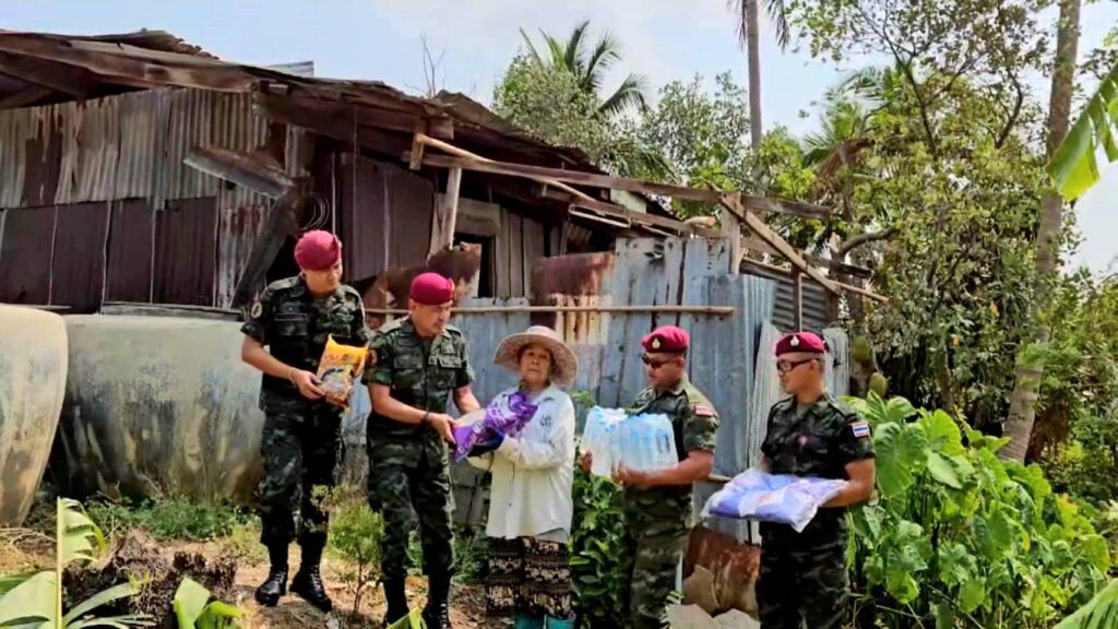 พ.ต.ศิวธนาณัฐ พงค์สินภรภัทร รักษาราชการแทน ผู้บังครับกองพันรบพิเศษที่ 2 กรมรบพิเศษที่ 1 (รพศ.1 พัน.2) ค่ายวชิราลงกรณ์ มอบหมายให้กำลังพลชุดเคลื่อนที่เร็ว จากศูนย์บรรเทาสาธารณะภัยของหน่วย ร่วมกับ นายมงคล จงใจลาน นายกองค์การบริหารส่วนตำบลมะนาวหวาน อำเภอพัฒนานิคม จังหวัดลพบุรี ลงพื้นที่ให้ความช่วยเหลือผู้ประสบเหตุวาตภัย ซึ่งได้รับผลกระทบจากการเกิดเหตุพายุฤดูร้อน ฝนฟ้าคะนองลมกรรโชกแรง ต่อเนื่องหลายชั่วโมง สร้างความเสียหายเป็นบริเวณกว้าง โดยเฉพาะในพื้นที่ 5 ตำบล ของอำเภอพัฒนานิคม จังหวัดลพบุรี ประกอบด้วย ตำบลพัฒนานิคม 31 หลังคาเรือน ตำบลโคกสลุง (อ่าน โคก-สะ-หลุง) 34 หลังคาเรือน ตำบลมะนาวหวาน 50 หลังคาเรือน ตำบลดีลัง 2 หลังคาเรือน และตำบลชอนน้อย 2 หลังคาเรือน รวม 5 ตำบล 119 หลังคาเรือน บ้านบางหลังได้รับความเสียหายพังทั้งหลัง ในการนี้ ได้ดำเนินการนำสิ่งของเครื่องอุปโภค-บริโภคที่จำเป็น อาทิ ข้าวสาร น้ำดื่ม บะหมี่กึ่งสำเร็จรูป ผ้าห่ม ไปมอบให้แก่ผู้ประสบภัยทุกเครัวเรือน เพื่อเป็นการบรรเทาความเดือดร้อนเบื้องต้น และสร้างขวัญกำลังใจแก่ผู้ประสบภัย ตามนโยบายของกองทัพบก พร้อมทั้งสำรวจความเสียหาย เพื่อเตรียมการให้ความช่วยเหลือ ตามระเบียบของกรมการปกครองส่วนท้องถิ่น ณ อำเภอพัฒนานิคม จังหวัดลพบุรี……………………………………………….