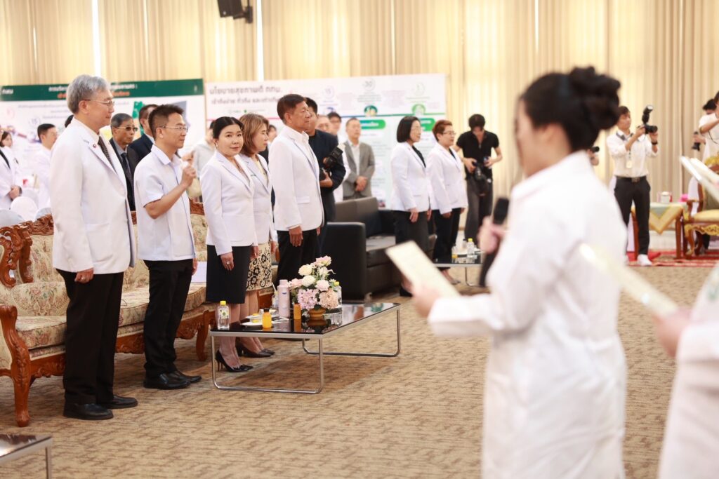 ผู้ช่วยเลขาธิการแพทยสภา ดร.พญ.เลิศลักษณ์ ลีลาเรืองแสง รองปลัดกรุงเทพมหานคร ศาสตราจารย์ เกียรติคุณ นพ.สารเนตร์ ไวคกุล คณบดีคณะแพทยศาสตร์ มหาวิทยาลัยกรุงเทพธนบุรี ดร.นพ.ภูริทัต แสงทองพานิชกุล ผู้อำนวยการโรงพยาบาลราชพิพัฒน์และศูนย์แพทยศาสตรศึกษาชั้นคลินิก ร่วมกล่าวให้โอวาทแก่นักศึกษาแพทย์ในโอกาสนี้ด้วย