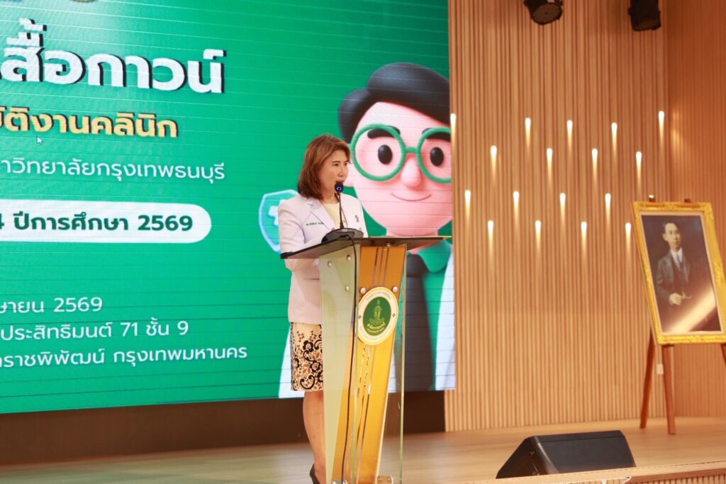 วันที่ 23 เมษายน 2569 พระพรหมวชิรคุณาธาร เจ้าอาวาสวัดศรีสุดารามวรวิหาร ที่ปรึกษาเจ้าคณะกรุงเทพมหานคร ผู้ช่วยแม่กองบาลีสนามหลวง พร้อมด้วย ศาสตราจารย์ ดร.บังอร เบ็ญจาธิกุล อธิการบดี มหาวิทยาลัยกรุงเทพธนบุรี (มกธ.) ร่วมในพิธีประสาทเสื้อกาวน์และก้าวสู่ชั้นคลินิกแก่นักศึกษาแพทย์ ชั้นปีที่ 4 คณะแพทยศาสตร์ มหาวิทยาลัยกรุงเทพธนบุรี ประจำปีการศึกษา 2569 พร้อมให้โอวาทแก่นักศึกษาแพทย์ที่เข้ารับเสื้อกาวน์ดังกล่าว โดยมี นายแพทย์ธนกฤต จินตวร
