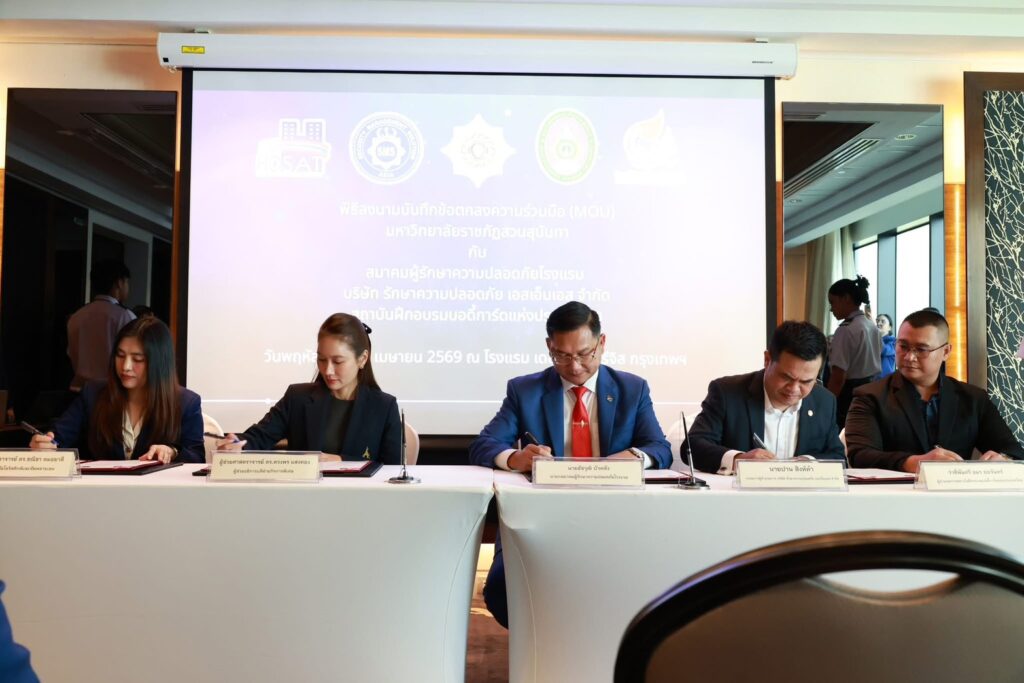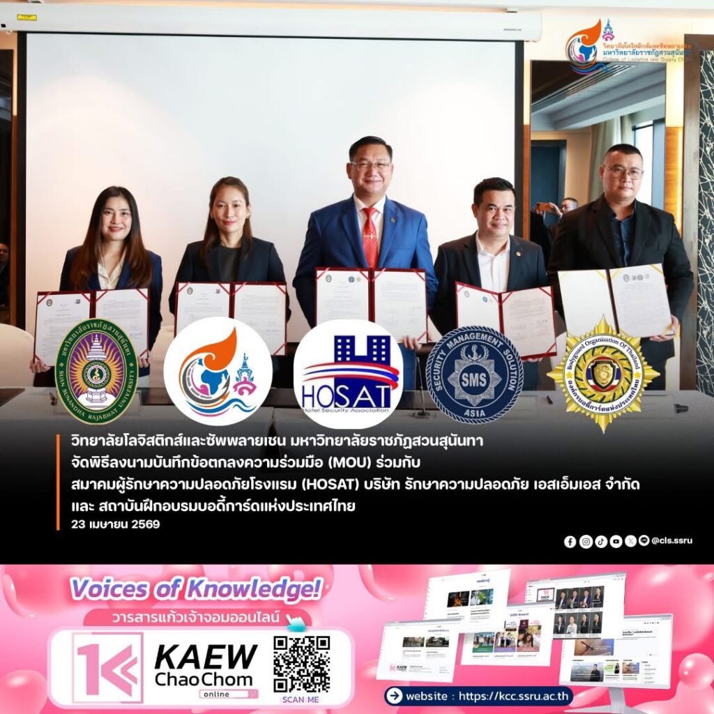 เมื่อวันพฤหัสบดีที่ 23 เมษายน 2569 ที่ผ่านมา วิทยาลัยโลจิสติกส์และซัพพลายเชน มหาวิทยาลัยราชภัฏสวนสุนันทา ได้ก้าวไปอีกขั้นในการสร้างเครือข่ายพันธมิตรวิชาชีพ โดยจัดพิธีลงนามบันทึกความเข้าใจ (MOU) ร่วมกับ 3 องค์กรชั้นนำด้านความปลอดภัย เพื่อบูรณาการองค์ความรู้ด้านความปลอดภัยเข้ากับงานโลจิสติกส์อย่างครบวงจรการลงนามในครั้งนี้ฝ่ายมหาวิทยาลัยฯ ได้รับเกียรติจาก ผู้ช่วยศาสตราจารย์ ดร.ดวงพร แสงทอง (ผู้ช่วยอธิการบดีฝ่ายกิจการพิเศษ) ได้รับมอบหมายจาก รองศาสตราจารย์ ดร.ชุติกาญจน์ ศรีวิบูลย์ ในการลงนาม พร้อมด้วย ผู้ช่วยศาสตราจารย์ ดร.ชณิชา หมอยาดี (คณบดีวิทยาลัยโลจิสติกส์ฯ)