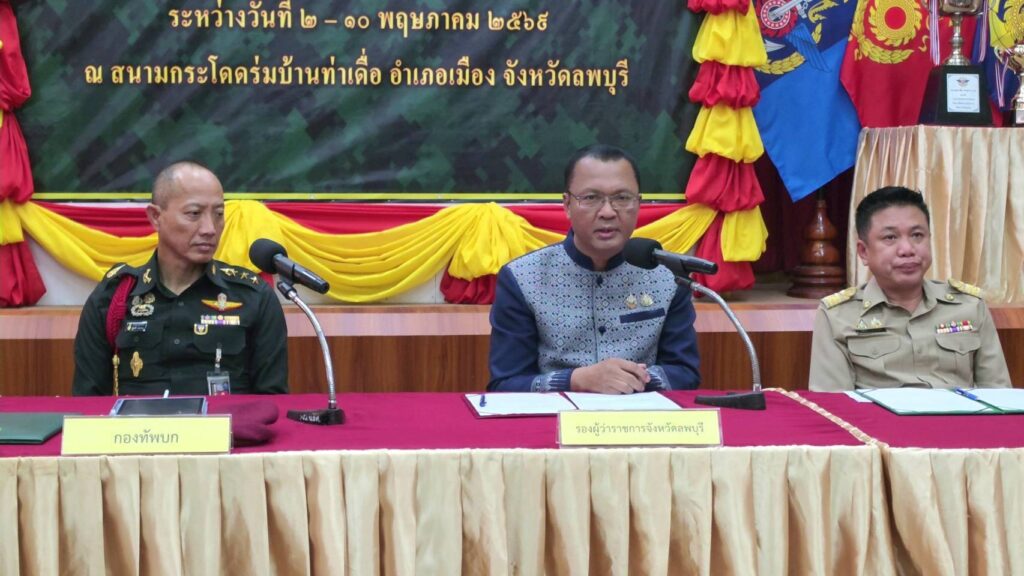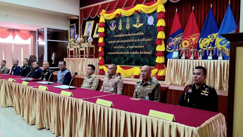 ที่ แหล่งสมาคมหน่วยบัญชาการสงครามพิเศษ อ.เมือง จ.ลพบุรี พันเอก กอสิน กัมปนยุทธ์ รองผู้บัญชาการโรงเรียนสงครามพิเศษ ศูนย์สงครามพิเศษ ผู้แทนกองทัพบก พร้อมด้วย นายประยูร ศิริวรรณ รองผู้ว่าราชการจังหวัดลพบุรี ตลอดจน ผู้แทนทีมกีฬากระโดดร่มแต่ละเหล่าทัพ ได้ร่วมกันแถลงข่าว ถึงความพร้อม ในการจัดการแข่งขันกีฬากระโดดร่ม กองทัพไทย ครั้งที่ 56 และชิงชนะเลิศแห่งประเทศไทย ประจำปี 2569 ซึ่งกำหนดจัดขึ้น ระหว่างวันที่ 2-10 พ.ค.69 เวลา 06.00 – 16.00 น.เป็นต้นไป ณ สนามกระโดดร่มบ้านท่าเดื่อ บริเวณเขาจีนแล ต.นิคมสร้างตนเอง อ.เมือง จ.ลพบุรี ซึ่งเป็นสนามมีจุดเด่นเป็นพื้นที่ท่องเที่ยว ทางธรรมชาติ และทำกิจกรรมเป็นพื้นที่ที่มีลักษณะเป็น “กรีนโซน” (Green Zone)ล้อมรอบด้วยทิวเขา มีทัศนียภาพที่สวยงามโดยเฉพาะช่วงเย็นจนถึงพระอาทิตย์ตกดิน ปัจจุบันเป็นแหล่งพักผ่อนหย่อนใจกลางแจ้ง เป็นจุดชมวิวและจุดเช็กอินที่ได้รับความสนใจจากนักท่องเที่ยวจำนวนมาก