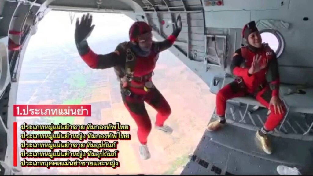 สำหรับการแข่งขัน แบ่งออกเป็น…ประเภทบุคคลแม่นยำ ชาย-หญิง นับผลคะแนนจำนวน 10 ครั้ง , ประเภทหมู่แม่นยำรวม 5 คน นับผลคะแนนจำนวน 8 ครั้ง ชิงถ้วยรางวัลพระบาทสมเด็จพระวชิรเกล้าเจ้าอยู่หัวฯ และ ประเภทเกาะหมู่เปลี่ยนรูป Formation Skydiving 4 way และ 8 way ชิงถ้วยรางวัลสมเด็จพระเจ้าน้องนางเธอ เจ้าฟ้าจุฬาภรณวลัยลักษณ์ อัครราชกุมารี โดยมีทีมนักกีฬาจากส่วนราชการ สำนักงานปลัดกระทรวงกลาโหม , กองบัญชาการกองทัพไทย , กองทัพบก , กองทัพเรือ , กองทัพอากาศ และสำนักงานตำรวจแห่งชาติ เข้าร่วมแข่งขัน กว่า 30 ทีม