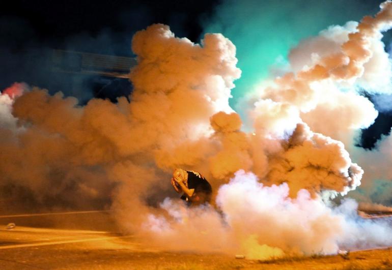 กองกำลังตำรวจในเมืองเฟอร์กูสัน ชานเมืองเซนต์หลุยส์ รัฐมิสซูรี ในสหรัฐฯ ต้องยิงแก๊สน้ำตา