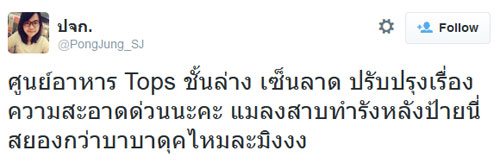 งานนี้ คุณ @PongJung_SJ ยังได้โพสต์ข้อความติงไปยังศูนย์การค้าด้วยว่า ขอให้ช่วยปรับปรุงเรื่องความสะอาดด่วน