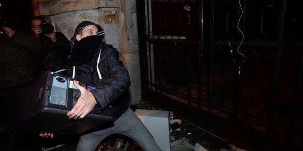 ชิ้นส่วนคอมพิวเตอร์เก่าไปโยนใส่หน้าที่ทำการพรรคฟิเดสซ์ซึ่งเป็นพรรครัฐบาล