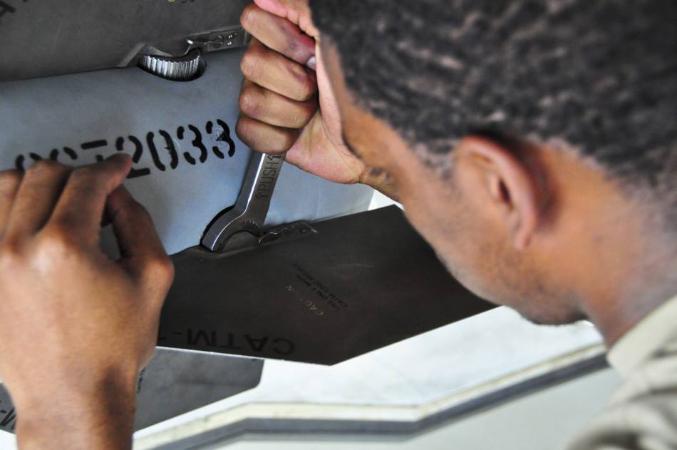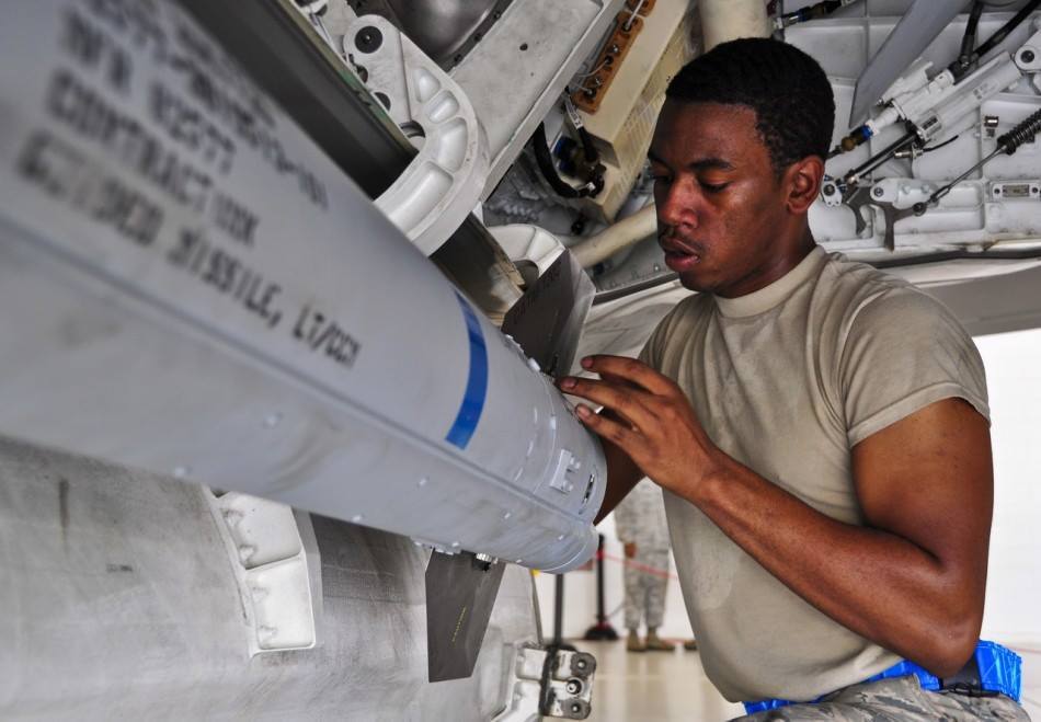 ภาพส่วนหนึ่งทหารอเมริกันซ้อมโหลดอาวุธให้กับเครื่องบิน F-35 สำหรับเครื่องบินที่มี weapon bay