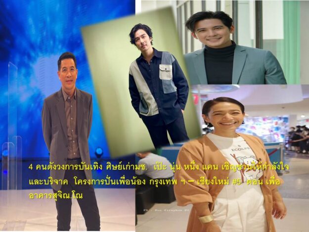 4 คนดังวงการบันเทิง ศิษย์เก่ามช. เป๊ะ นุ่น หนึ่ง แคน เชิญชวนให้กำลังใจและบริจาค โครงการปั่นเพื่อน้อง กรุงเทพ ฯ – เชียงใหม่ #5 ตอน เพื่ออาคารสุจิณ.โณ