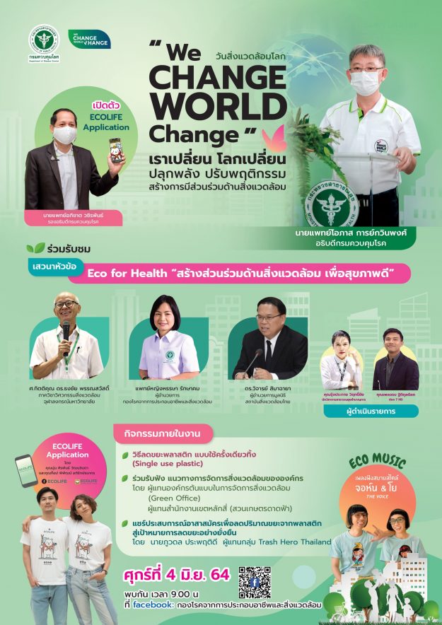กรมควบคุมโรค เชิญร่วมกิจกรรมวันสิ่งแวดล้อมโลก We Change World Change “เราเปลี่ยน โลกเปลี่ยน”