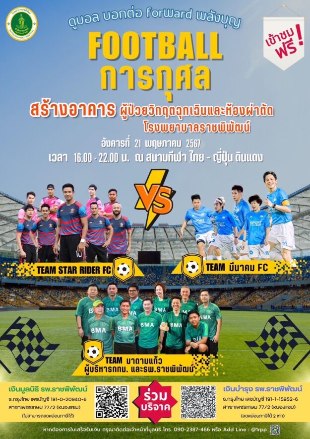ดูบอล บอกต่อ สมทบทุน สร้างตึกสำหรับผู้ป่วยวิกฤตฉุกเฉิน(ICU) โรงพยาบาลราชพิพัฒน์