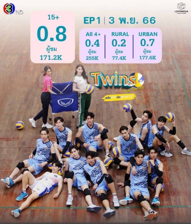 ฟีดแบ็กเริด เรตติ้งเยี่ยม!!! “Twins The Series สลับรัก นักลูกยาง”กระแสแรงโดนใจแฟนคลับ