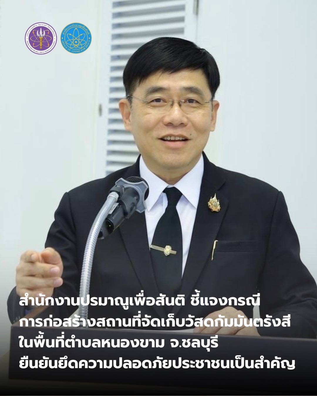 สำนักงานปรมาณูเพื่อสันติ ชี้แจงกรณีการการขออนุญาตก่อสร้างสถานที่จัดเก็บวัสดุกัมมันตรังสีในพื้นที่ตำบลหนองขาม จ.ชลบุรี ยืนยันยึดความปลอดภัยประชาชน ชุมชนและสิ่งแวดล้อมเป็นสำคัญ