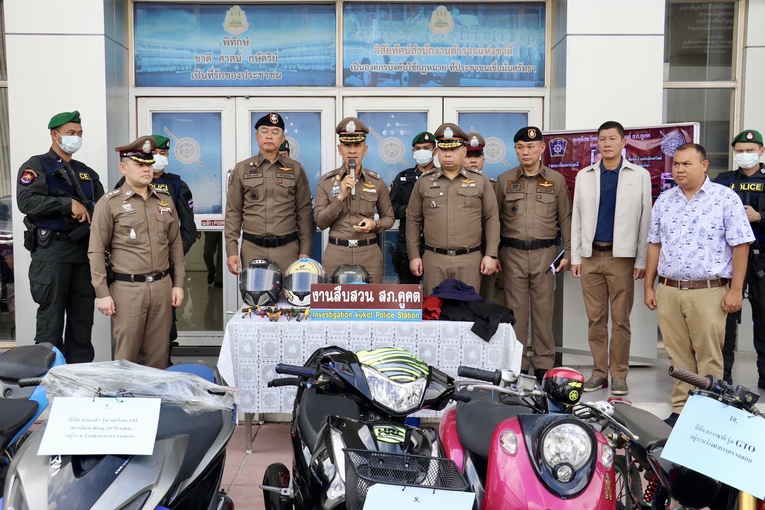 “บิ๊กจิ เอราวัณ1” แถลงข่าวคดีลักทรัพย์รถจักรยานยนต์หลายท้องที่ ตำรวจภูธรภาค1 ต่อเนื่องนครบาล