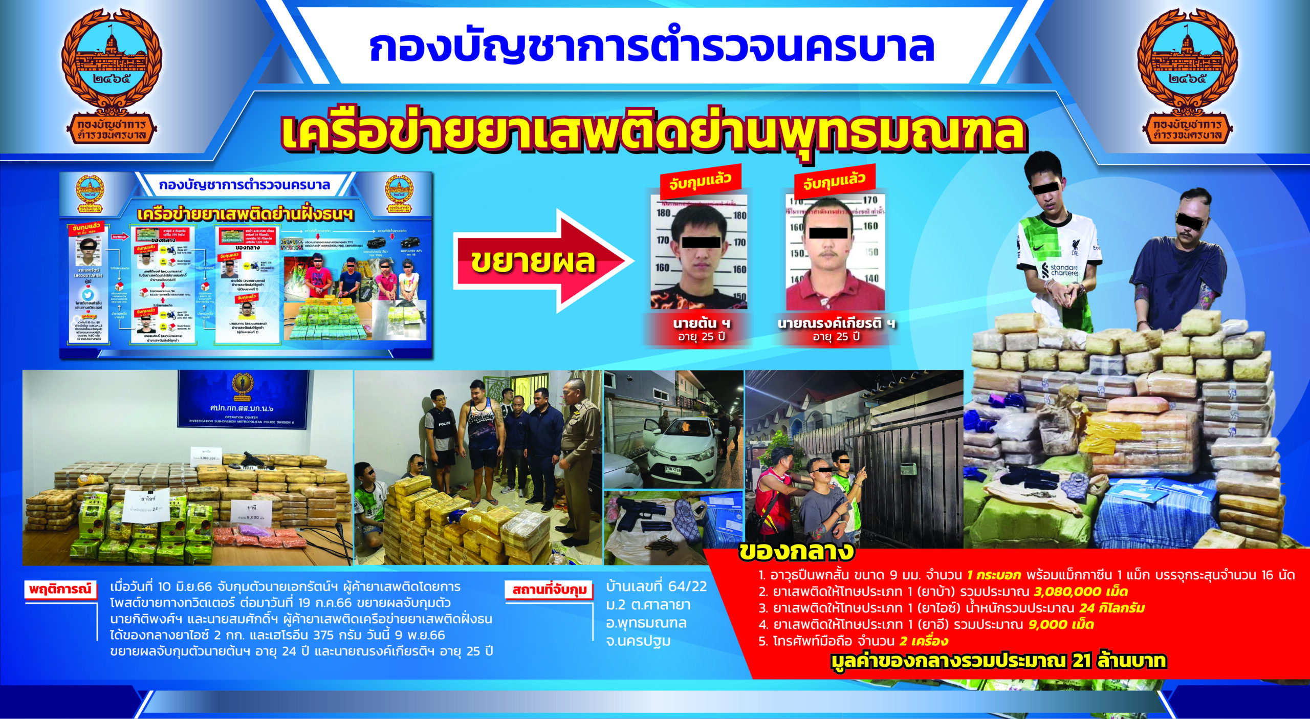 สืบสวนนครบาล 6 “รวบเครือข่ายยาเสพติดย่านพุทธมณฑล” ยาบ้า 3 ล้านเม็ด,ไอซ์ 24 ก.ก.,ยาอี 9,000 เม็ด