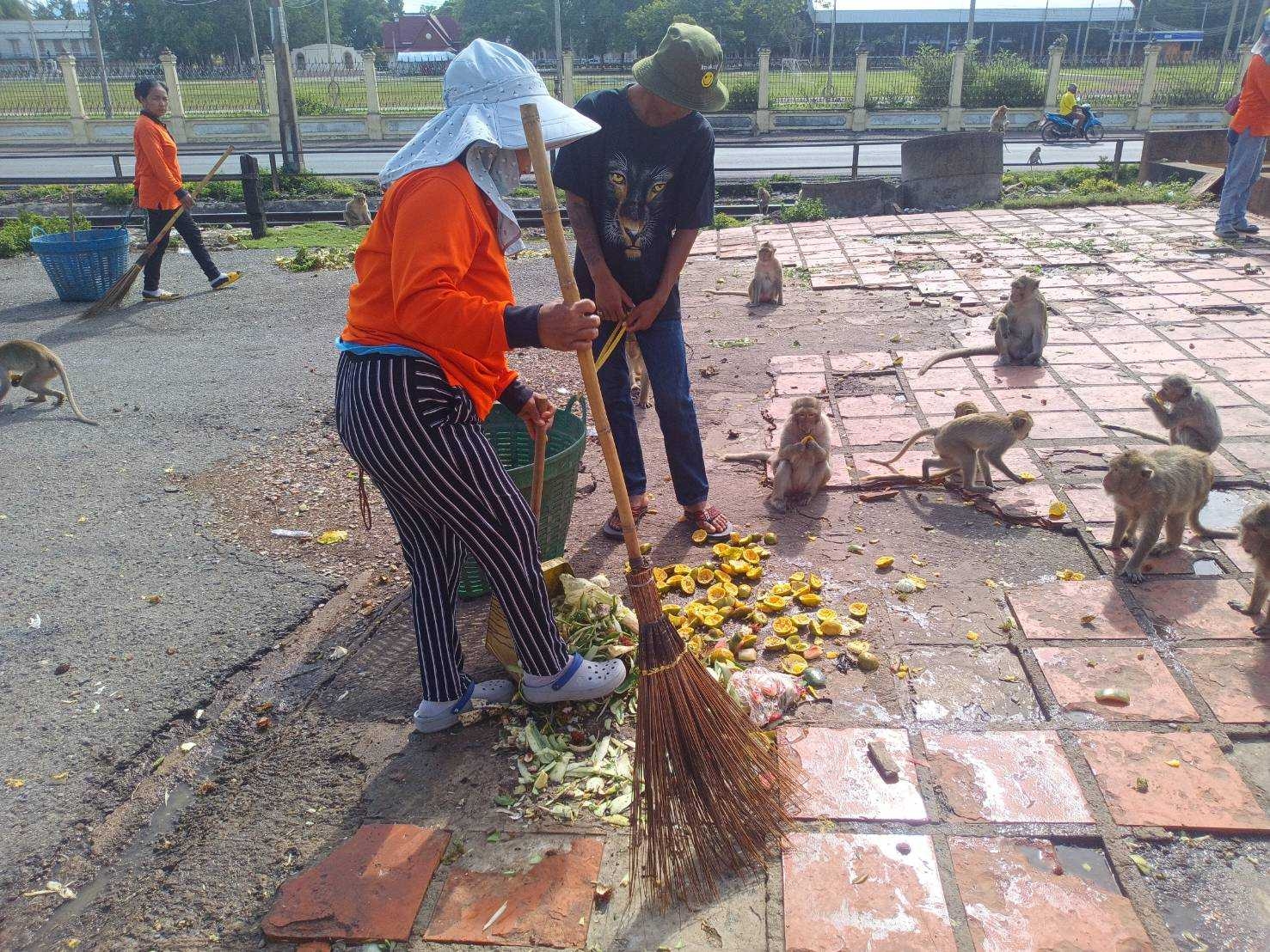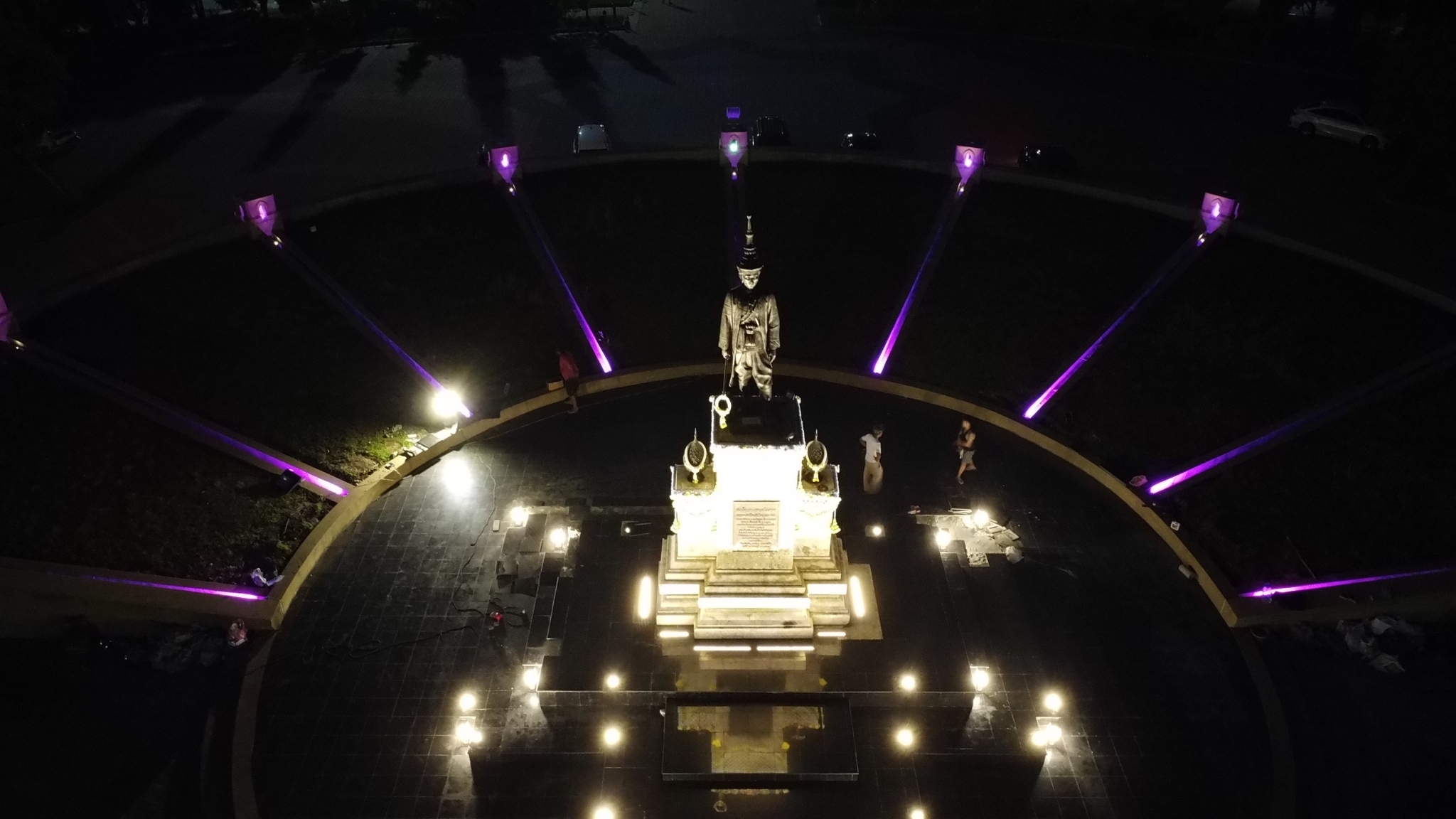 เจ้าหน้าที่เทศบาลเมืองลพบุรี ที่เกี่ยวข้อง ติดตามความคืบหน้าโครงการติดตั้งระบบไฟฟ้าแสงสว่างวงเวียนเทพสตรี หรือวงเวียนพระนารายณ์