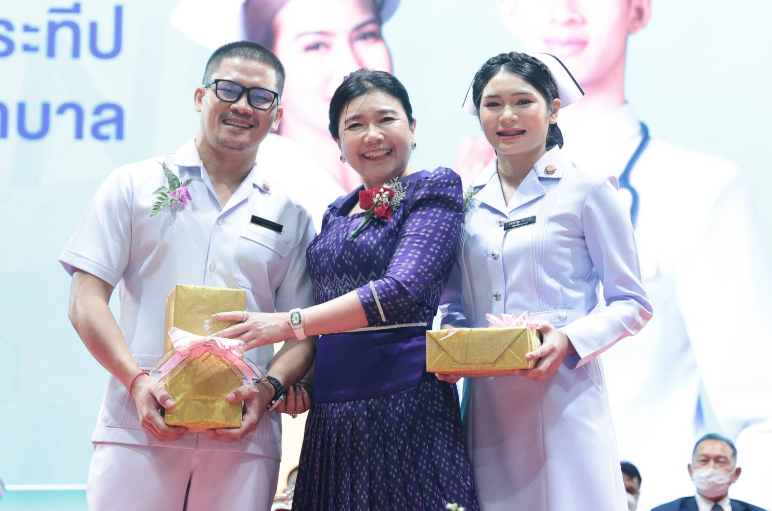 อธิการบดี มกธ.มอบแถบหมวกและเข็มสัญลักษณ์แก่ผู้สำเร็จการศึกษาหลักสูตรพยาบาลศาสตรบัณฑิต พร้อมมอบหมวกและดวงประทีป แก่นักศึกษาพยาบาลชั้นปีที่ 2 และประกาศนียบัตรผู้ช่วยพยาบาล รุ่นที่ 8 ปีการศึกษา 2565