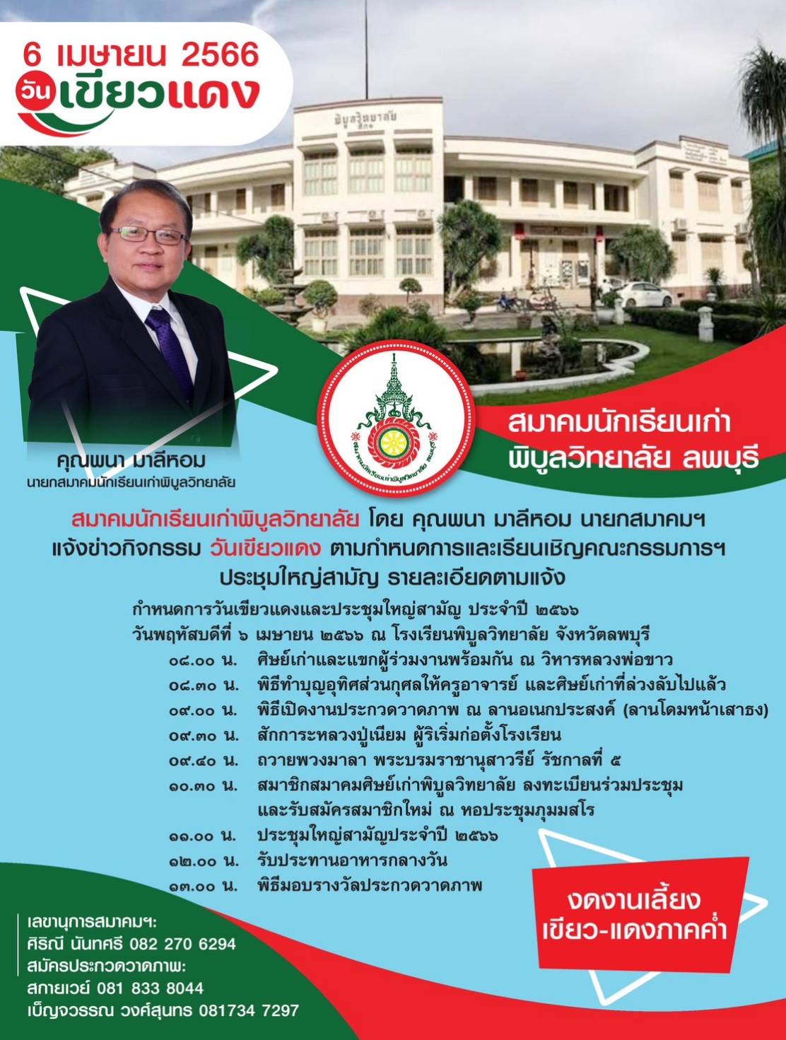 Detailsสมาคมนักเรียนเก่าพิบูลขอเชิญศิษย์เก่าลูกพิบูลชาวเขียวแด…
