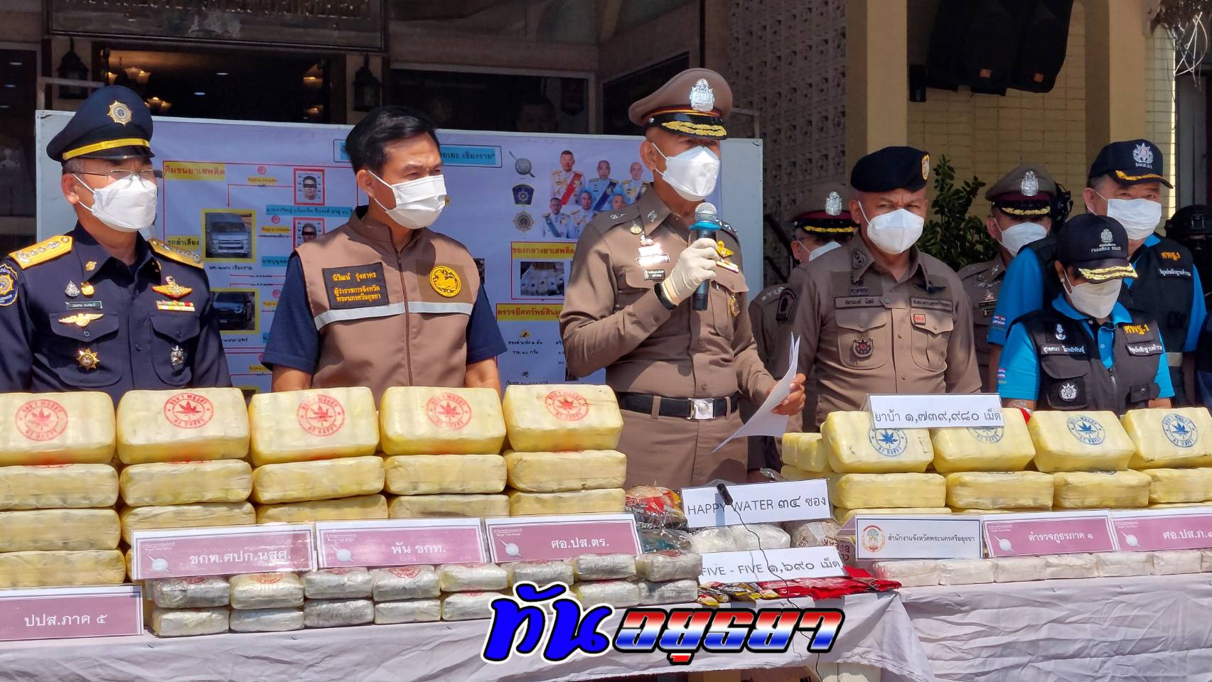 ตำรวจอยุธยา จับกุมยาบ้า เกือบ 1.8 ล้านเม็ด พร้อม ยึดทรัพย์ ของกลางในคดี รวมกว่า 20 ล้านบาท ตะลึงพบยาเสพติดชนิดใหม่อีก 2 ชนิด คือยาแฮปปี้วอเตอร์ และยาไฟว์ไฟว์