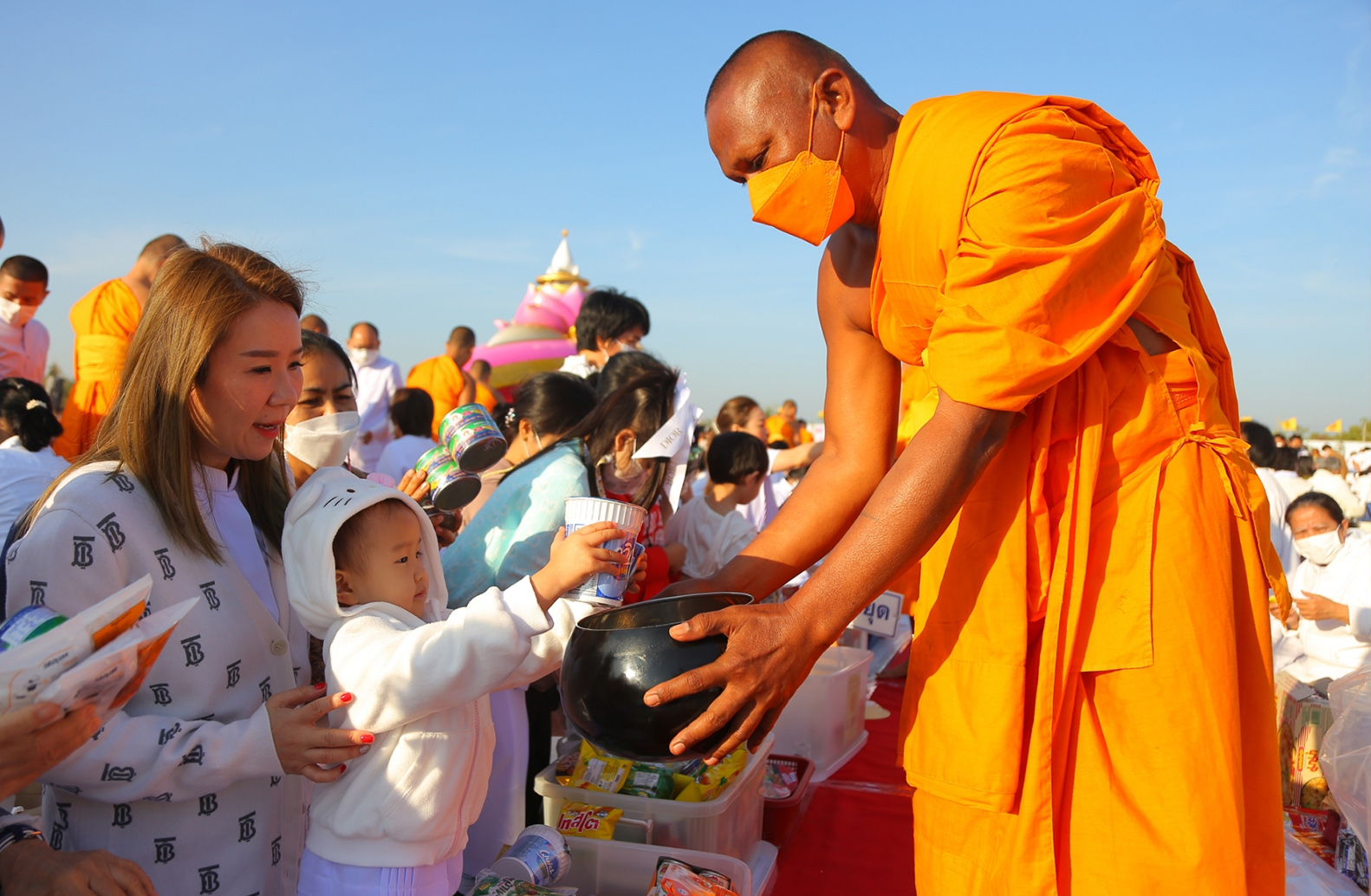 ปทุมธานี พสกนิกรชาวพุทธต้อนรับพระสงฆ์ 1,139 รูป จุดประทีปบูชาธรรมถวายพระพร สมเด็จเจ้าฟ้าพัชรกิติยาภาฯ