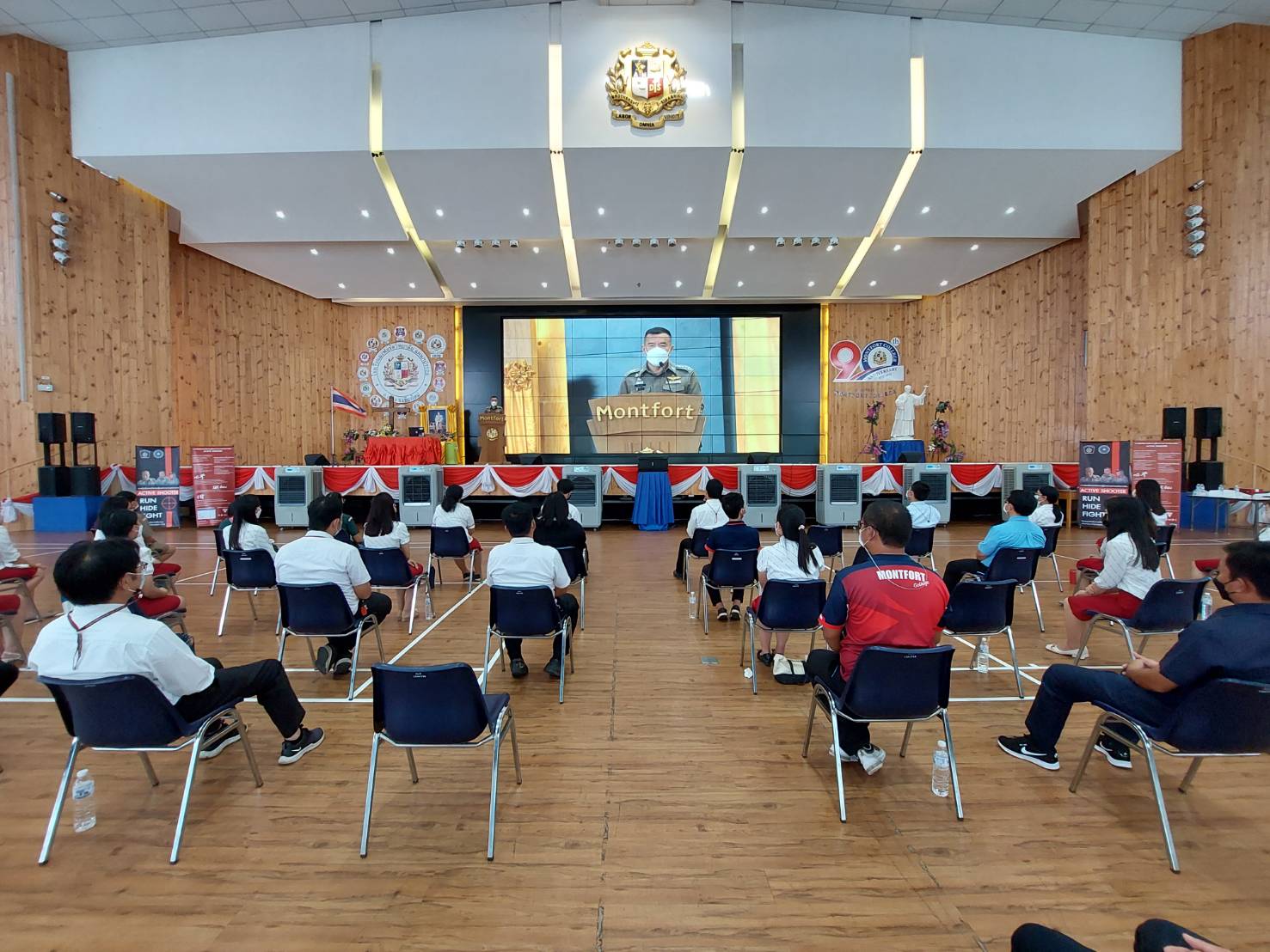พล.ต.ท.ปิยะ ต๊ะวิชัย ผบช.ภ.5 มาเป็นประธานในพิธีปิดการฝึกอบรม การเอาตัวรอดจากเหตุการณ์กราดยิง (Active Shooter) ให้แก่คณะครู อาจารย์ นักเรียน โรงเรียนมงฟอร์ตวิทยาลัย