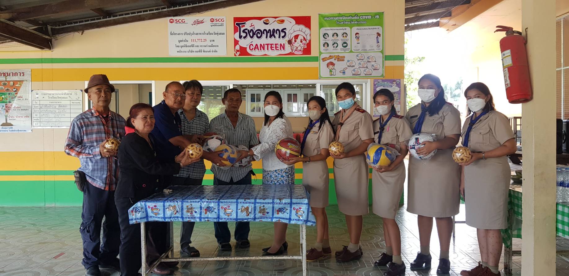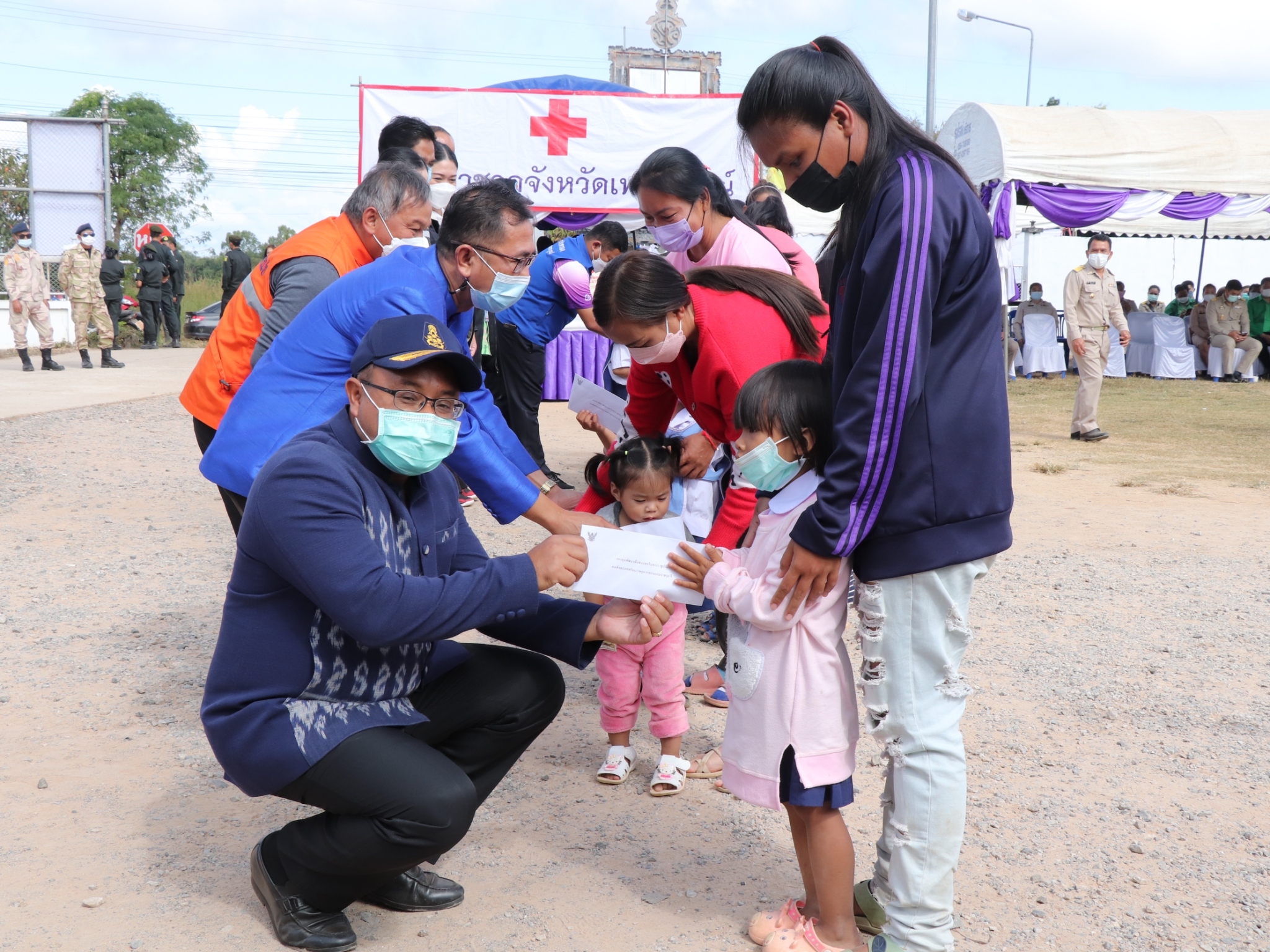 ผู้ช่วยเจ้าอาวาสวัดระฆังพร้อมผู้ใหญ่ใจดีนำของมามอบให้แก่ชาวตำบลบางน้ำเชี่ยว 400 ชุด
