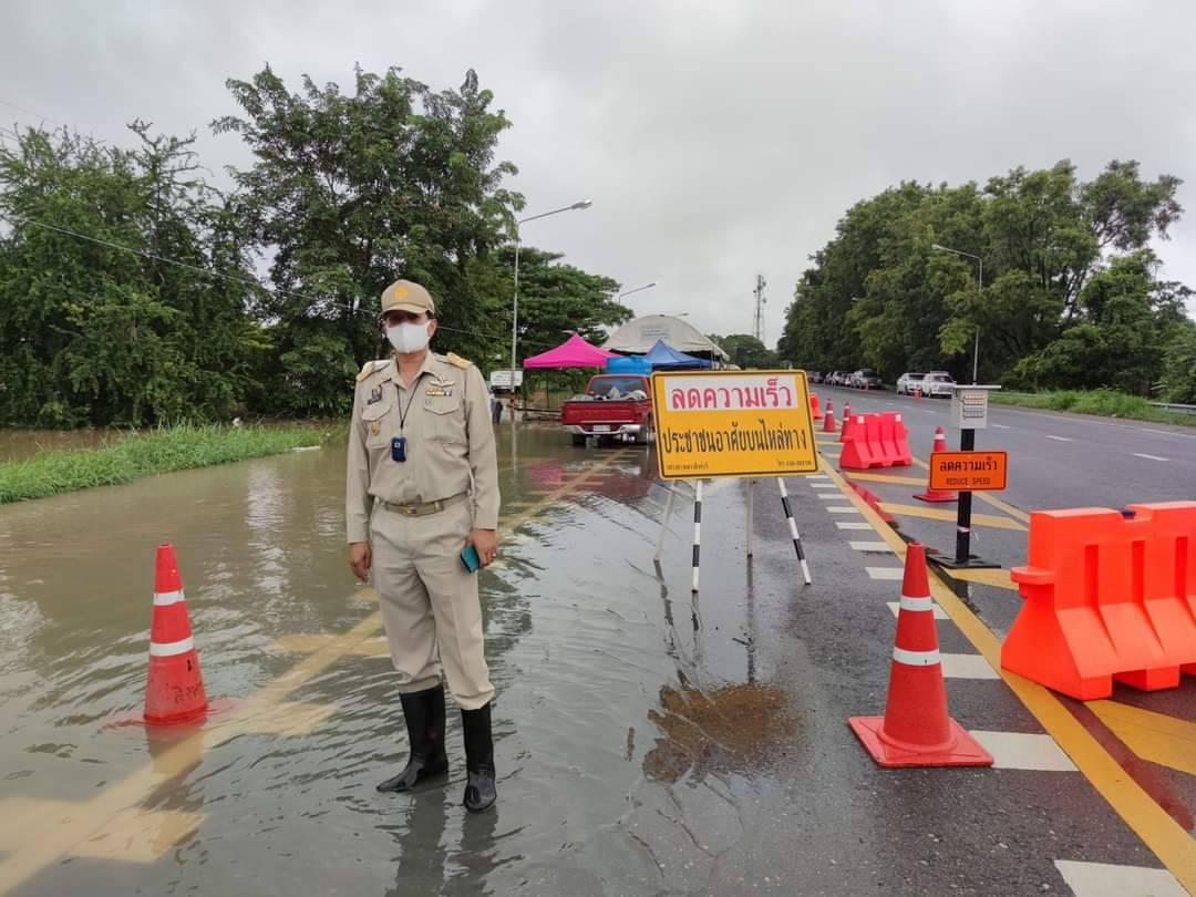 นายอำเภอเมืองสิงห์บุรี ตรวจสอบสถานการณ์น้ำท่วมบริเวณริมถนนทางหลวง สาย 311 (สิงห์บุรี-ชัยนาท)