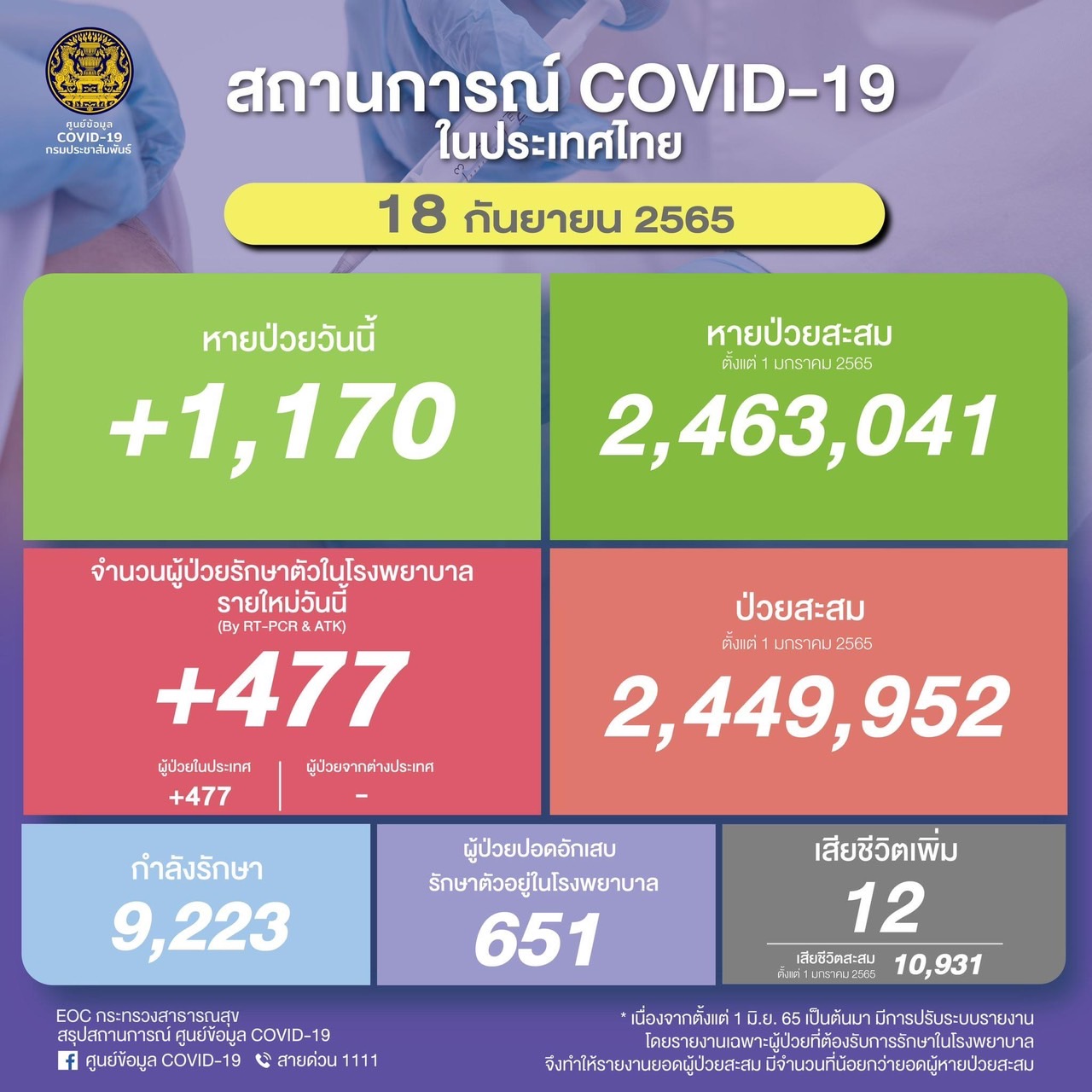 Detailsผู้ป่วยรายใหม่ (รักษาตัวใน รพ.) จำนวน 477 ราย จำแนกเป็น…