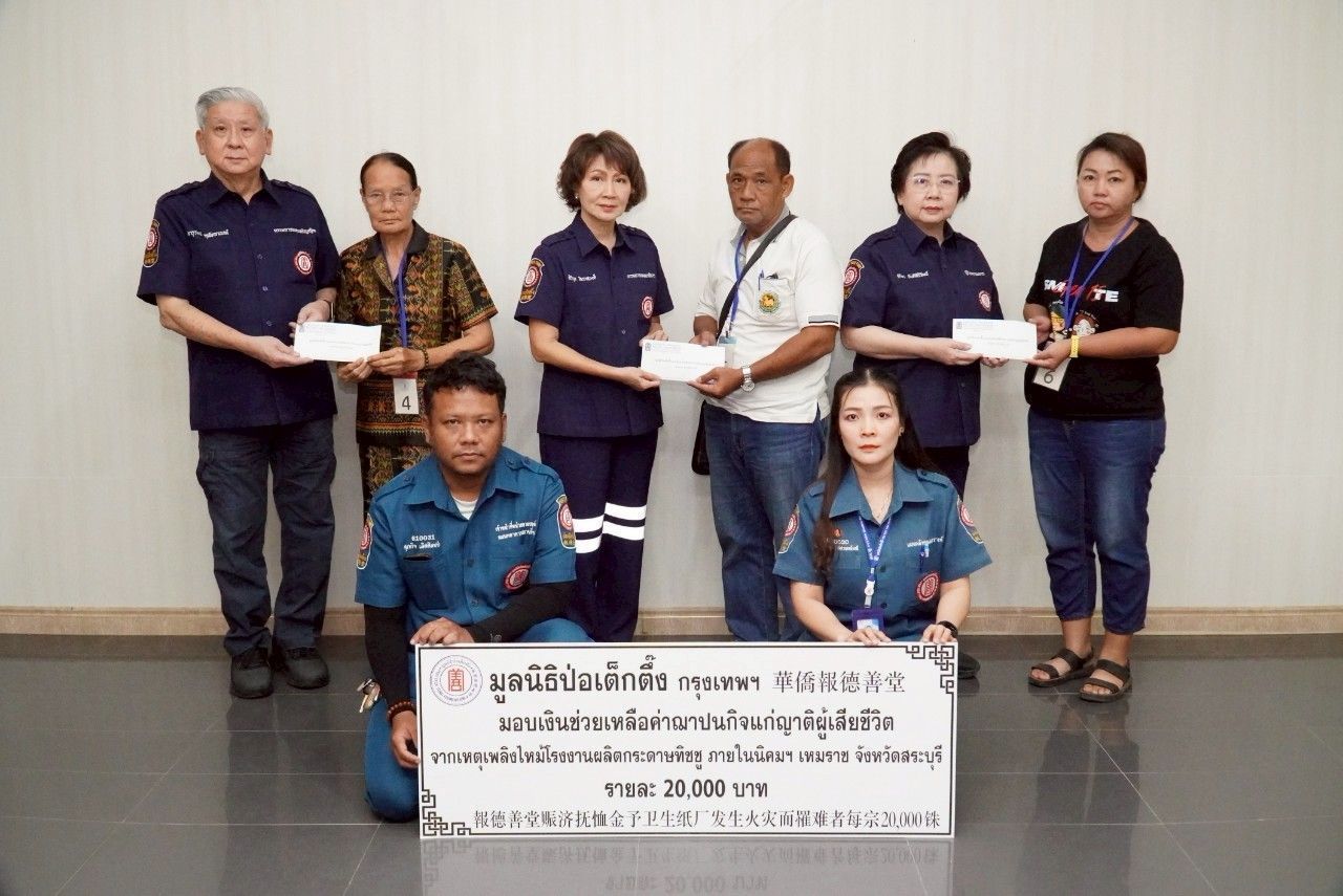 มูลนิธิป่อเต็กตึ๊ง ซับน้ำตา เยียวยาครอบครัวผู้สูญเสียและผู้บาดเจ็บจากอัคคีภัยโรงงานผลิตกระดาษทิชชู นิคมอุตสาหกรรมเหมราช อำเภอหนองแค จังหวัดสระบุรี
