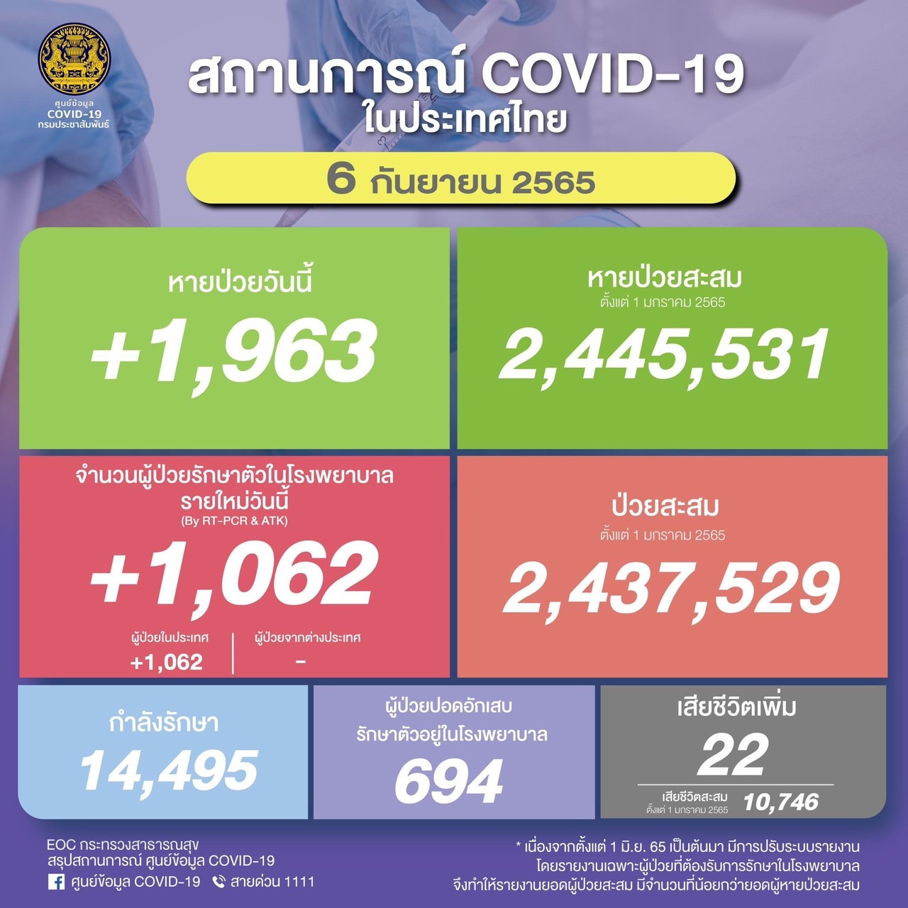 Detailsผู้ป่วยรายใหม่ (รักษาตัวใน รพ.) จำนวน 1,062 ราย จำแนกเป…