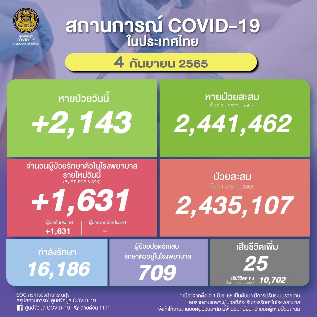 วันอาทิตย์ที่ 4 กันยายน 2565ผู้ป่วยรายใหม่ (รักษาตัวใน …