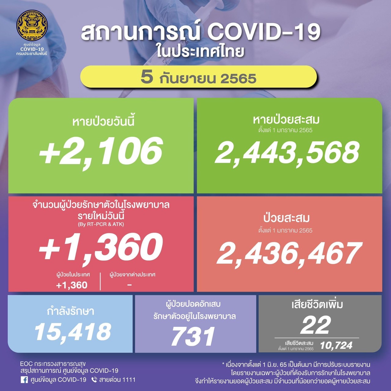 วันจันทร์ที่ 5 กันยายน 2565ผู้ป่วยรายใหม่ (รักษาตัวใน ร…