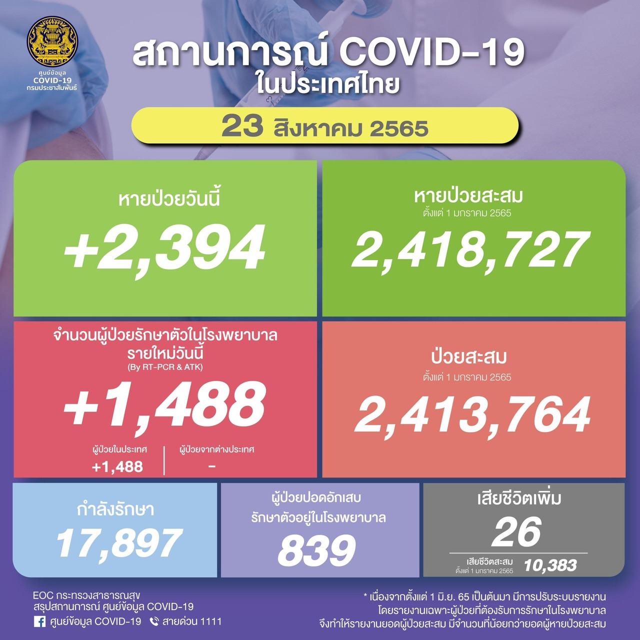 Detailsผู้ป่วยรายใหม่ (รักษาตัวใน รพ.) จำนวน 1,488 ราย จำแนกเป…