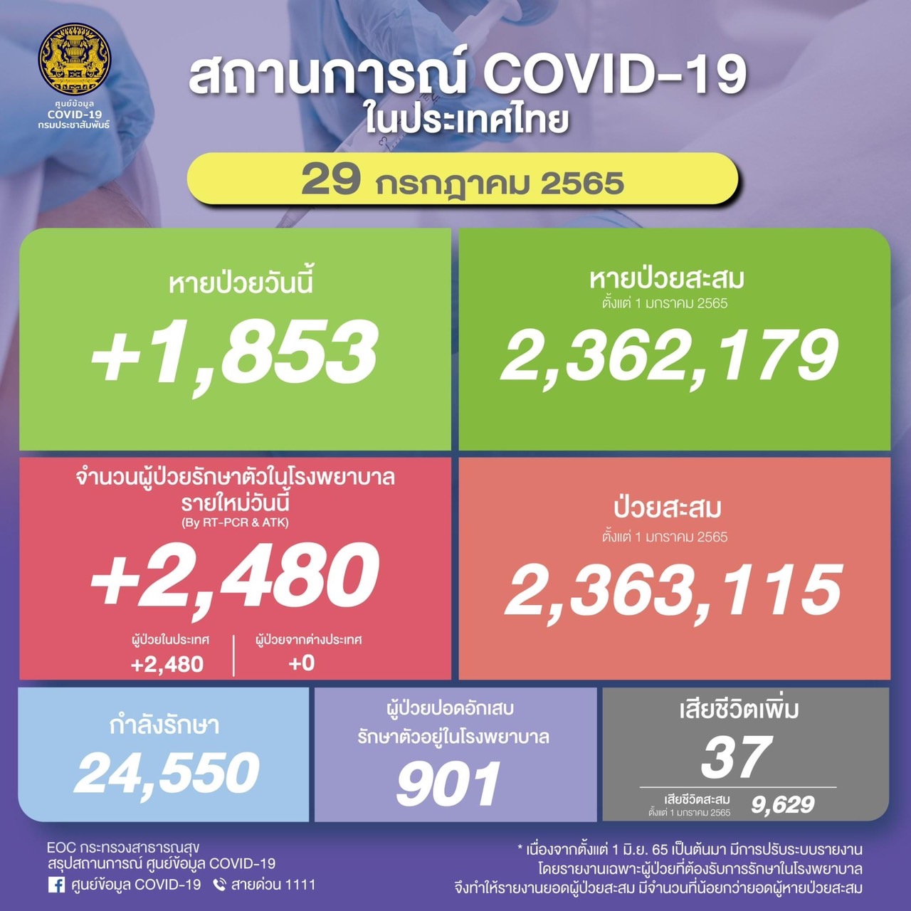 Detailsผู้ป่วยรายใหม่ (รักษาตัวใน รพ.) จำนวน 2,480 ราย จำแนกเป…