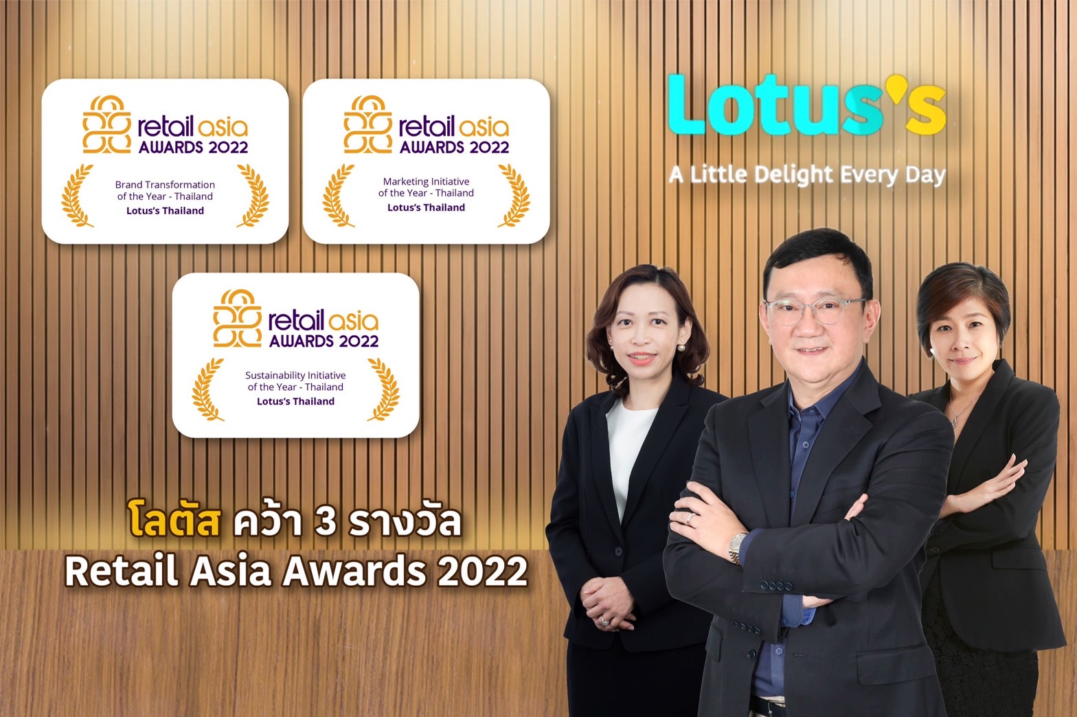 โลตัส คว้า 3 รางวัล Retail Asia Awards 2022 ด้านแบรนด์ การตลาด และความยั่งยืน การันตีความสำเร็จขององค์กรค้าปลีกไทยในเวทีโลก