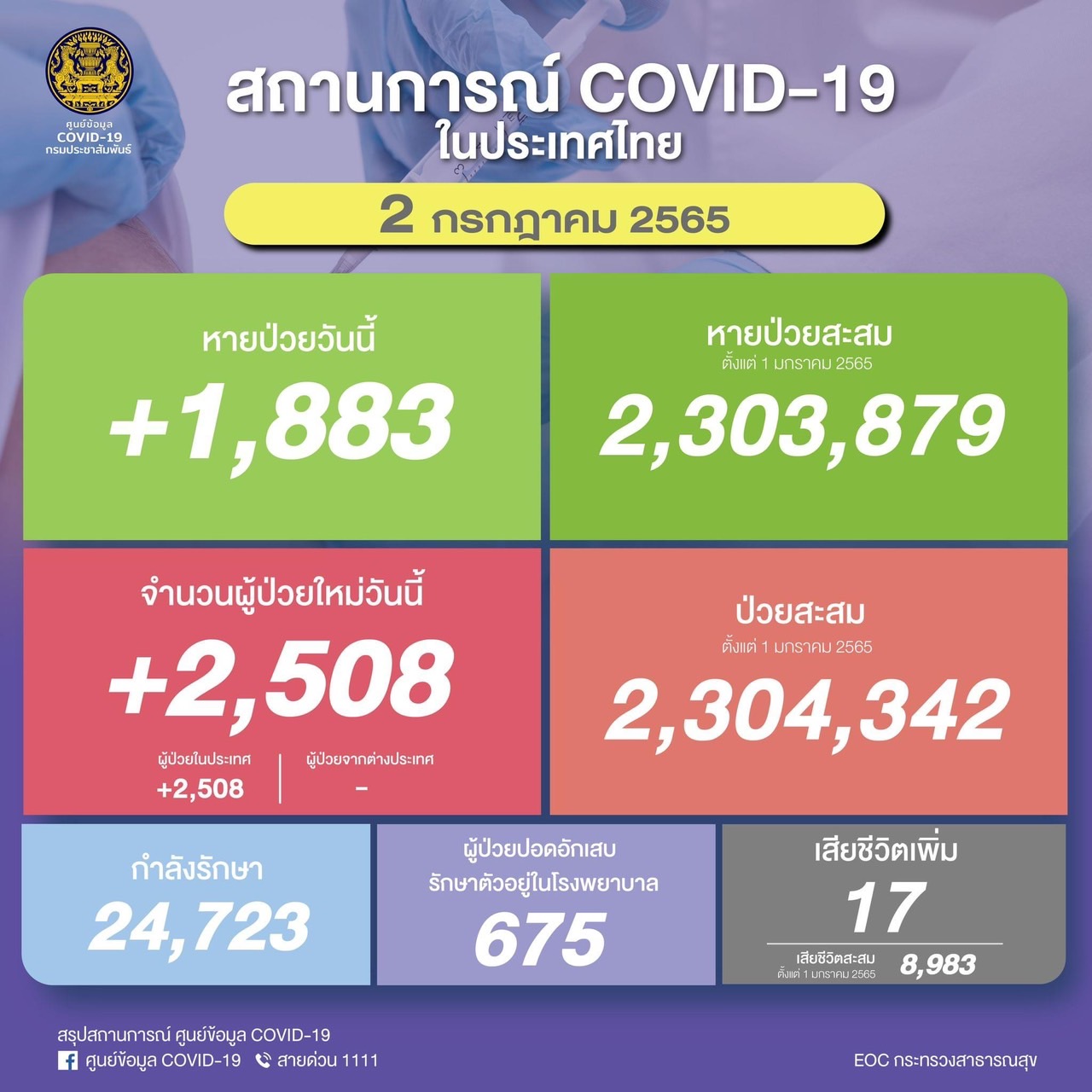 รายงานผู้ป่วยติดเชื้อโควิด-19 วันเสาร์ที่ 2 กรกฎาคม 2565