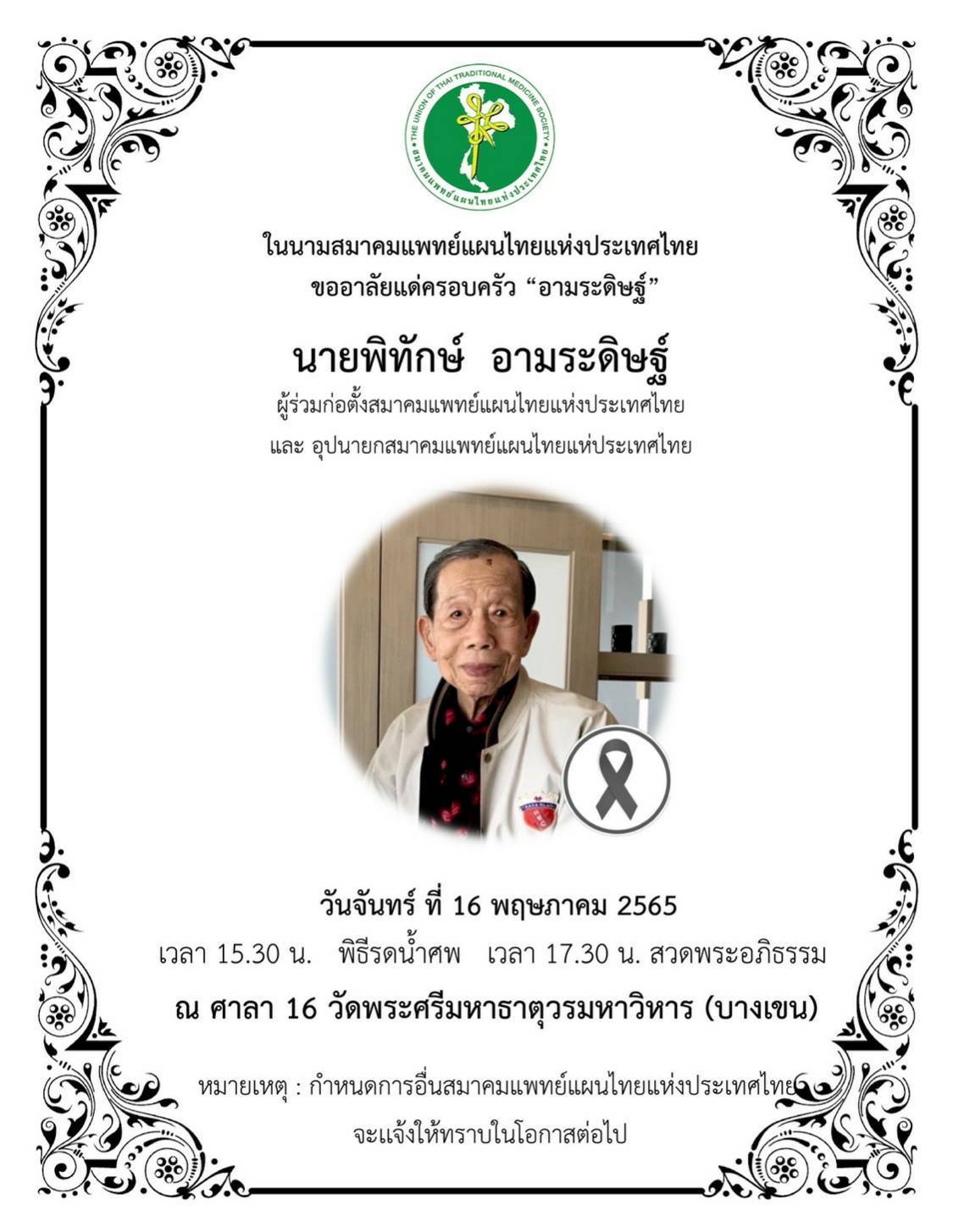 Detailsสมาคมแพทย์แผนไทยแห่งประเทศไทย ขอร่วมไว้อาลัยและขอแสดงคว…