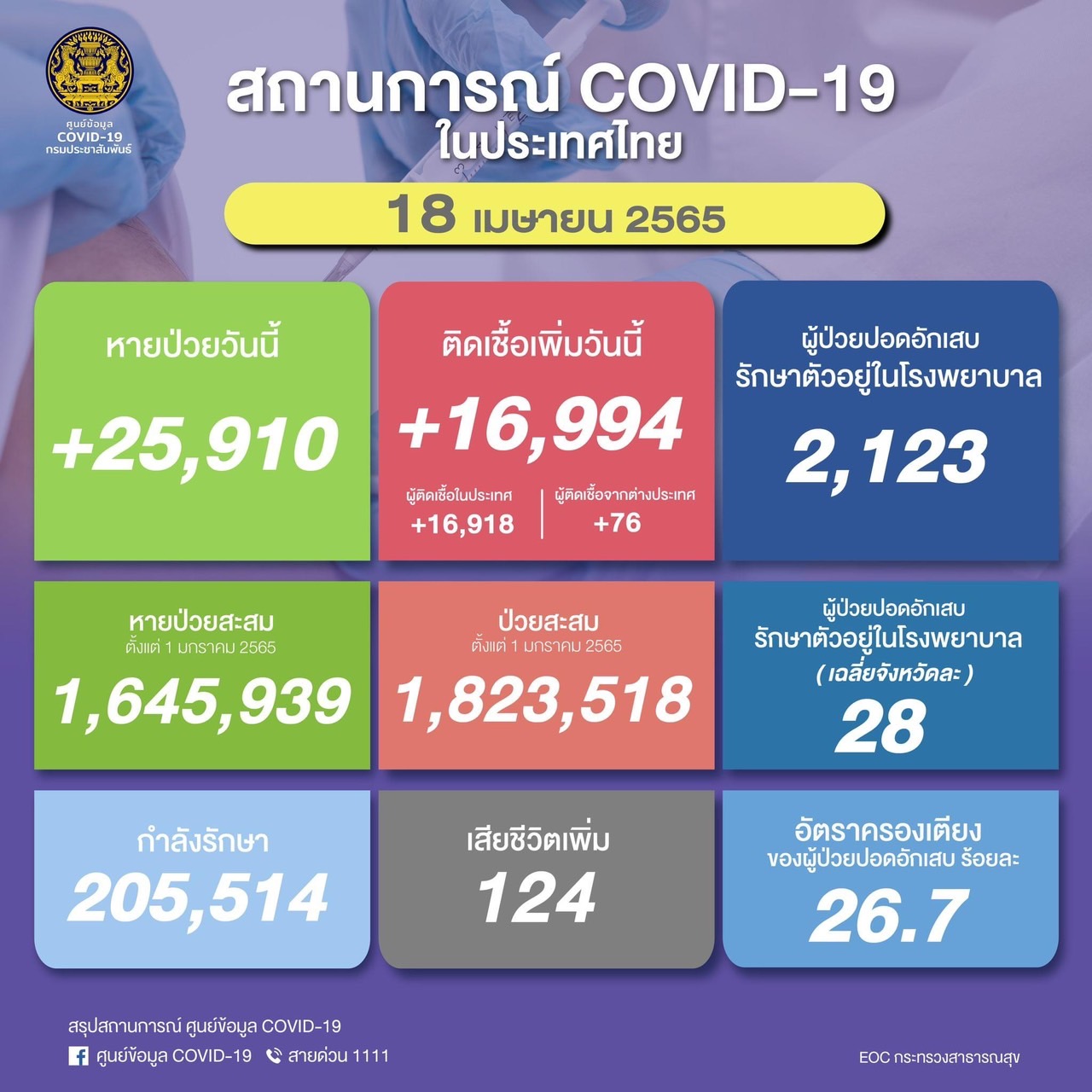 Detailsรวม 16,994 ราย จำแนกเป็นผู้ป่วยจากในประเทศ 16,918 รายผู…