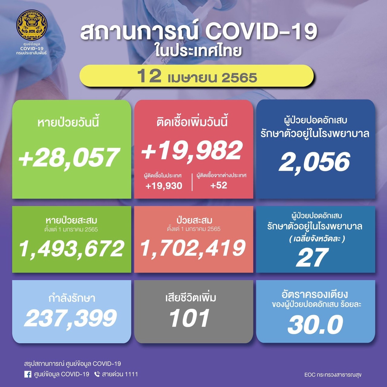 Detailsขอเชิญประชาชนทั่วไปกระตุ้นภูมิป้องกันโควิด -19 ช่วงสงกร…