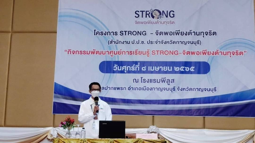 สำนักงาน ป.ป.ช. ประจำจังหวัดกาญจนบุรี ร่วมกับชมรม STRONG-จิต พอเพียงต้านทุจริตจังหวัดกาญจนบุรี จัดกิจกรรมโครงการ STRONG – จิตพอเพียงต้านทุจริต “กิจกรรมพัฒนาศูนย์การเรียนรู้ STRONG-จิตพอเพียงต้านทุจริต”